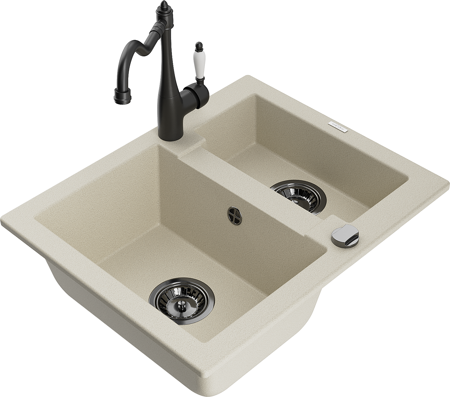 Mexen Carlos évier en granit 1,5 bac avec robinet de cuisine Carla, beige - 6518-69-670700-70