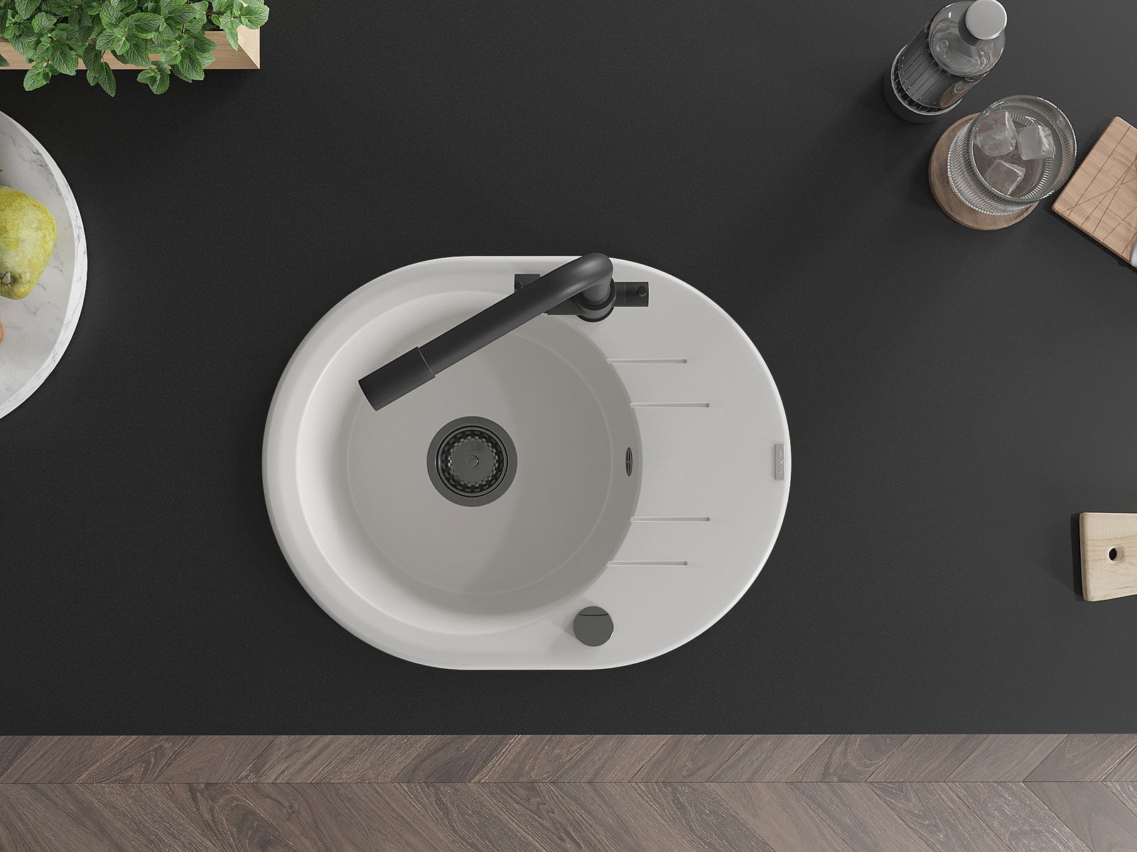 L'évier a été fabriqué en granit de haute qualité. Il constitue un complément élégant et surtout pratique à toute cuisine, quel que soit son style. La haute qualité et la durabilité du granit garantissent une utilisation pendant de nombreuses années.