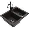 Mexen Carlos évier en granit 1,5-bac avec robinet de cuisine Carla, gris - 6518-71-670700-70-B