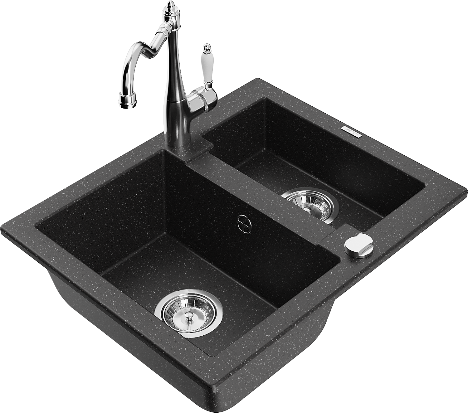 Mexen Carlos évier de cuisine en granit 1,5 bac avec robinet de cuisine Carla, noir/argent métallisé - 6518-73-670700-00