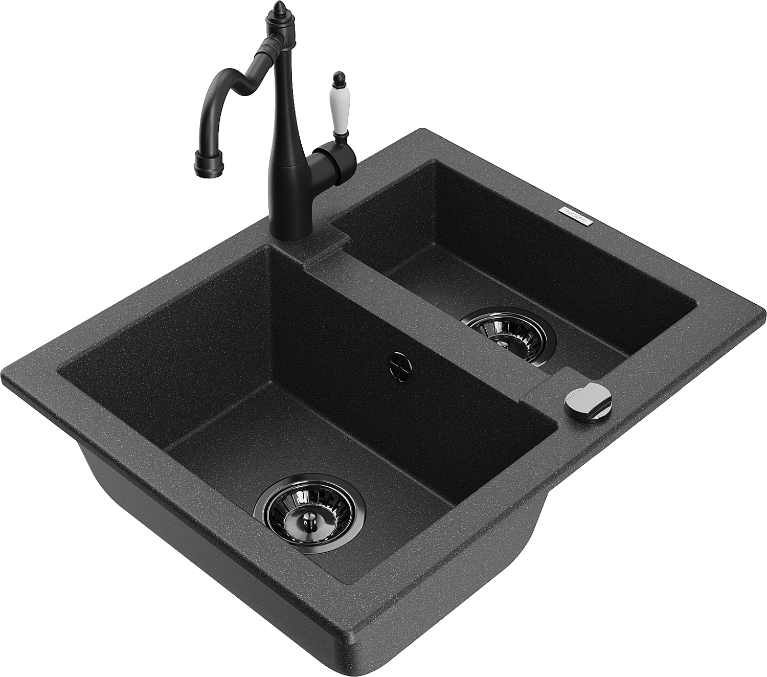 Mexen Carlos évier en granit 1,5 bac avec robinet de cuisine Carla, noir moucheté - 6518-76-670700-70-B