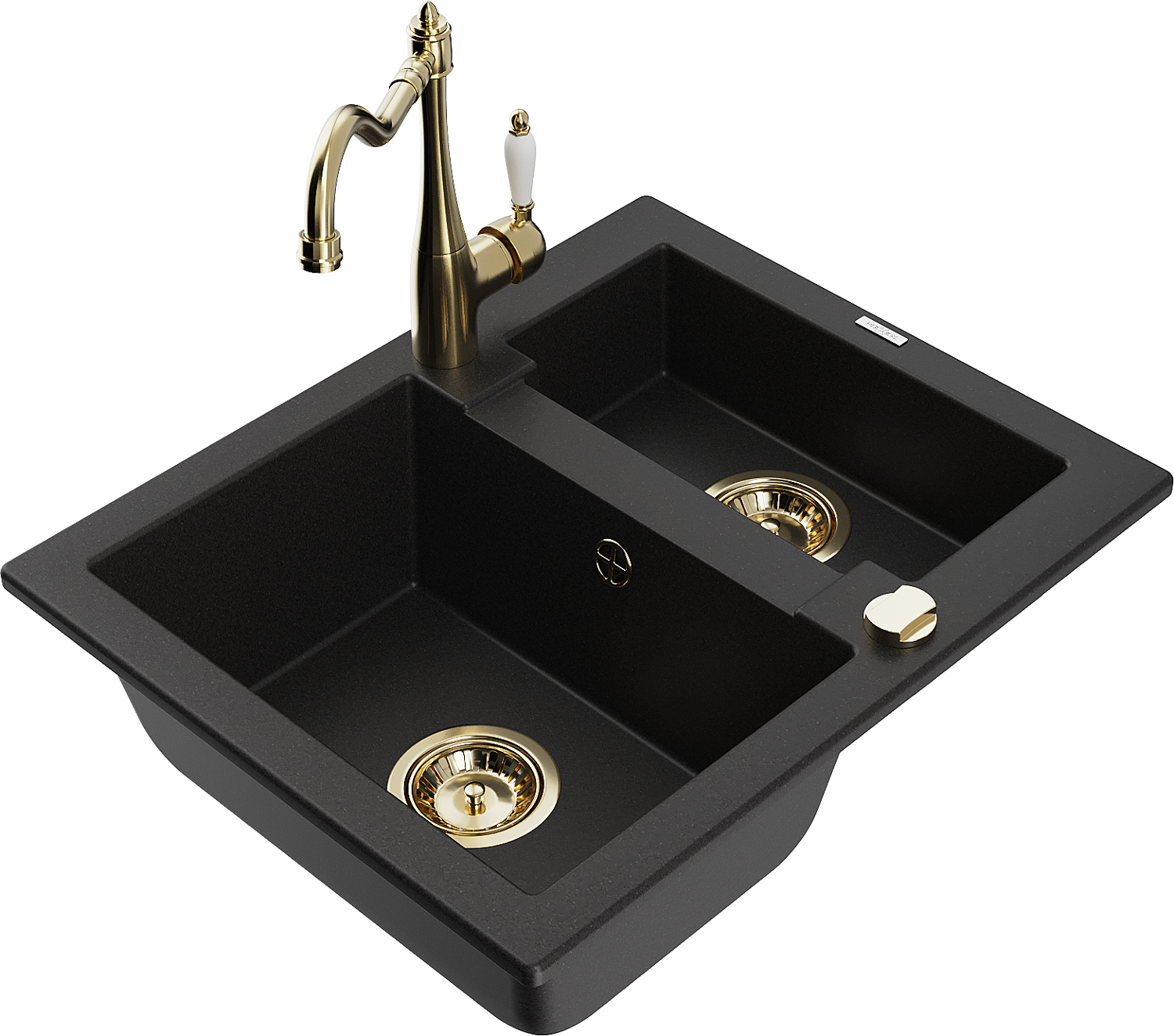 Mexen Carlos évier en granit 1,5 bac avec robinet de cuisine Carla, noir - 6518-77-670700-50