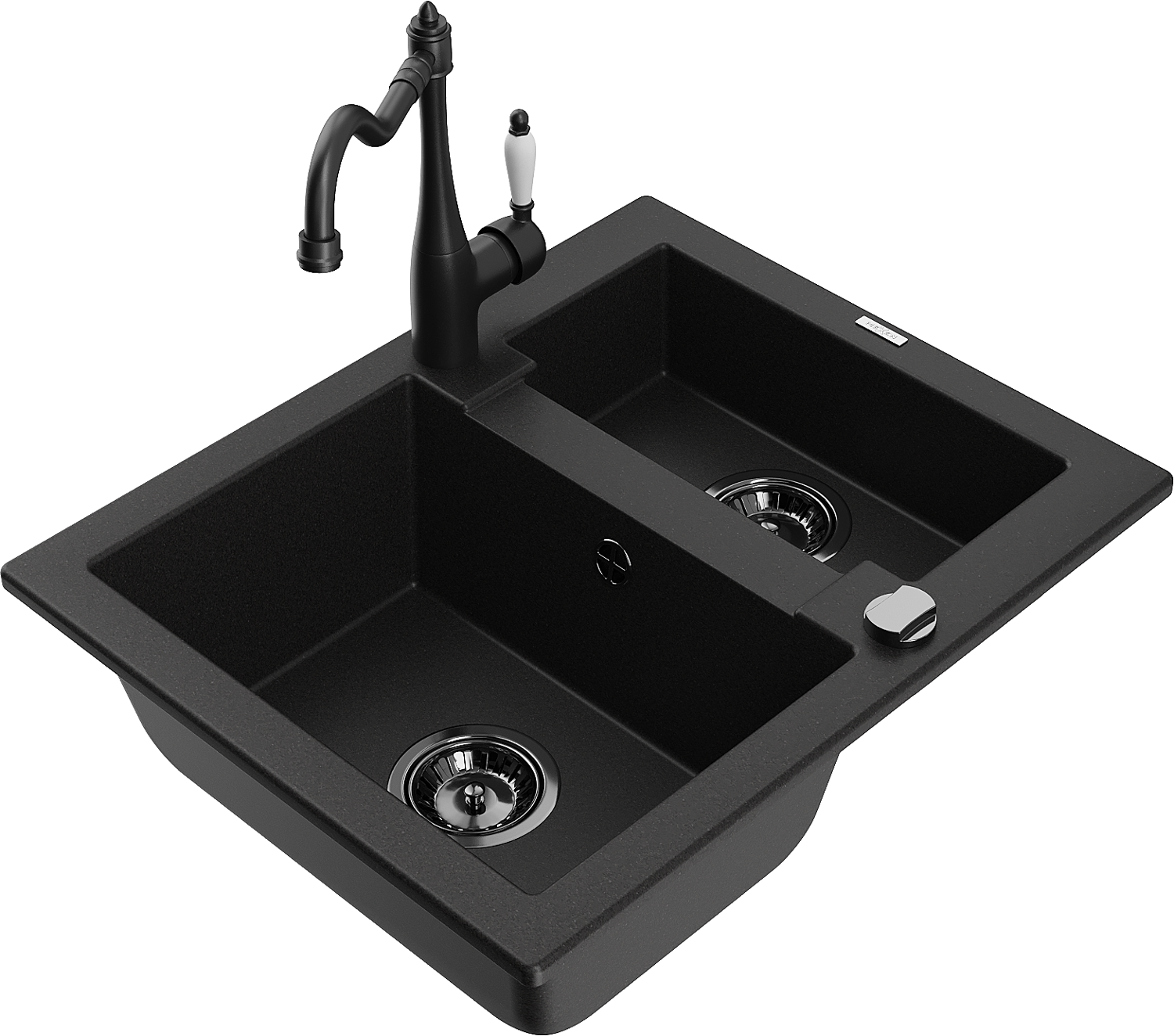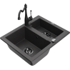 Mexen Carlos évier en granit 1,5 bac avec robinet de cuisine Carla, noir - 6518-77-670700-70-B