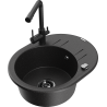 Mexen Kevin évier en granit à 1 bac avec égouttoir et robinet de cuisine Duero, noir - 6517-77-671600-50-B