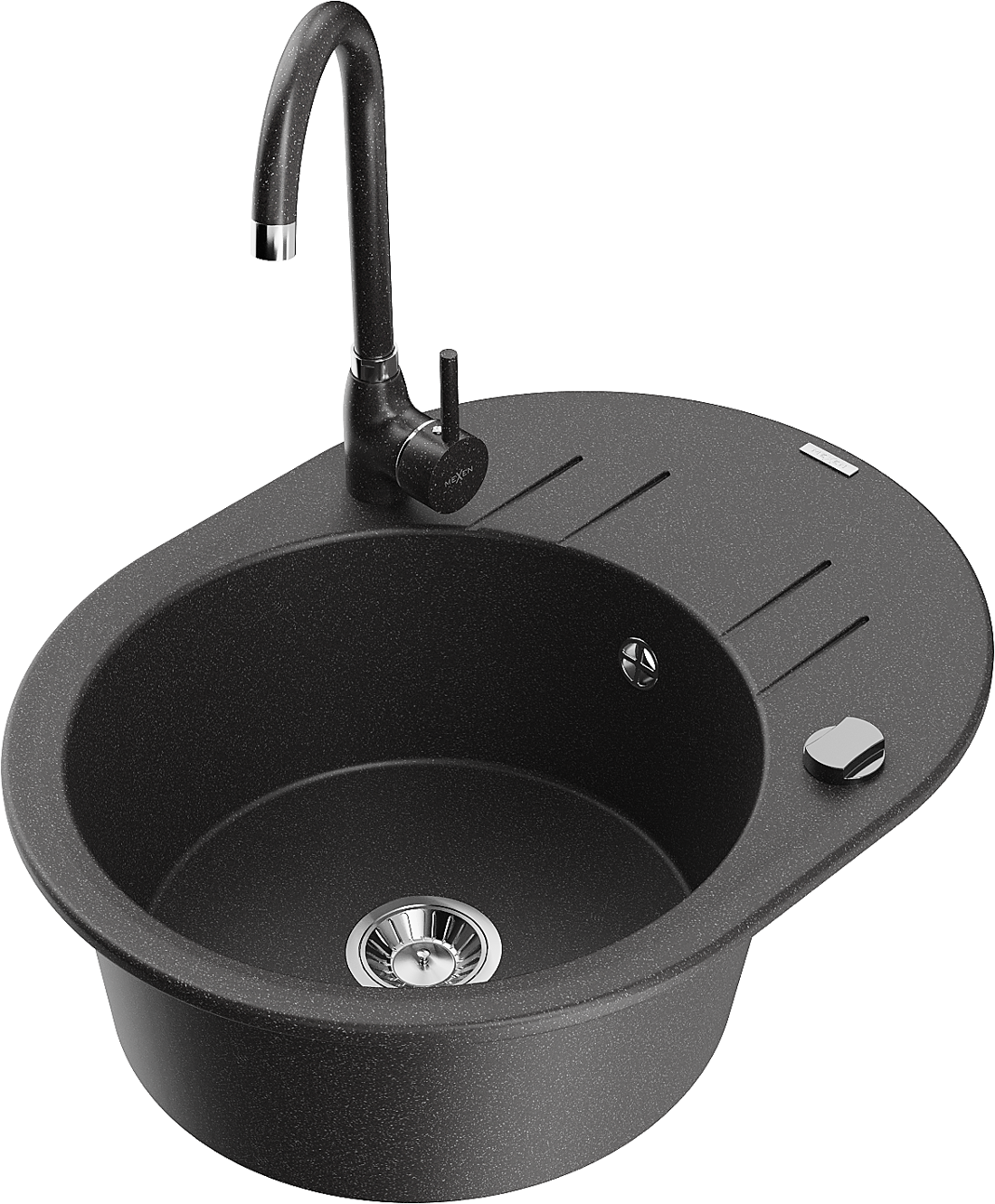 Mexen Kevin évier en granit 1 bac avec égouttoir et robinet de cuisine Telma, moucheté - 6517-76-670200-76