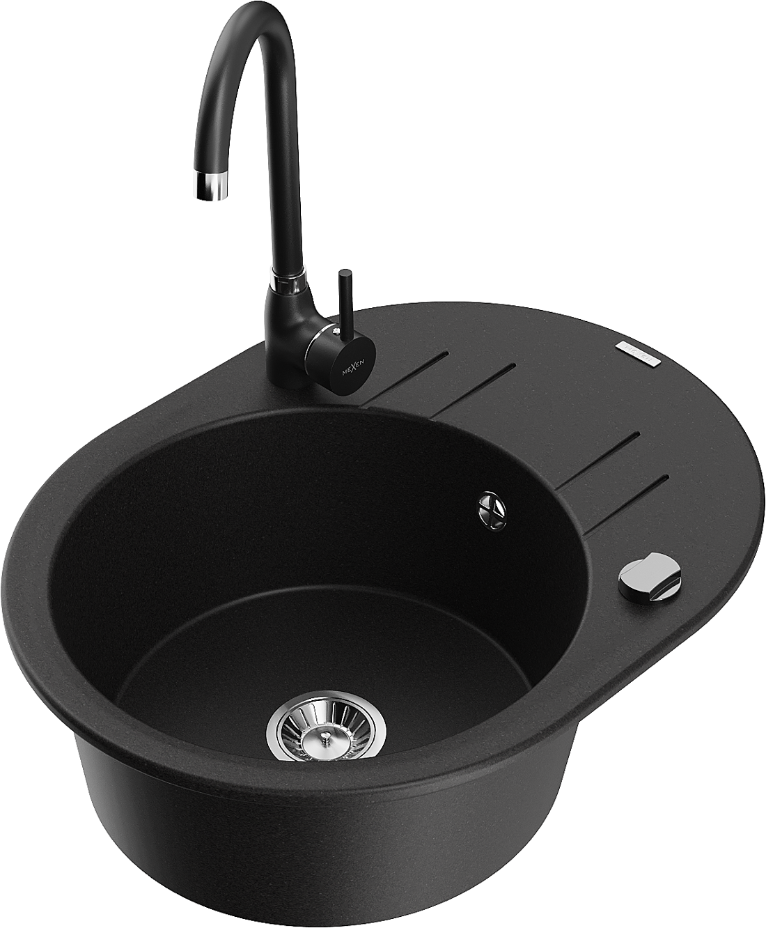 Mexen Kevin évier en granit 1 bac avec égouttoir et robinet de cuisine Telma, noir - 6517-77-670200-70
