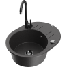 Mexen Kevin évier en granit 1 bac avec égouttoir et mitigeur de cuisine Telma, noir - 6517-77-670200-70-B