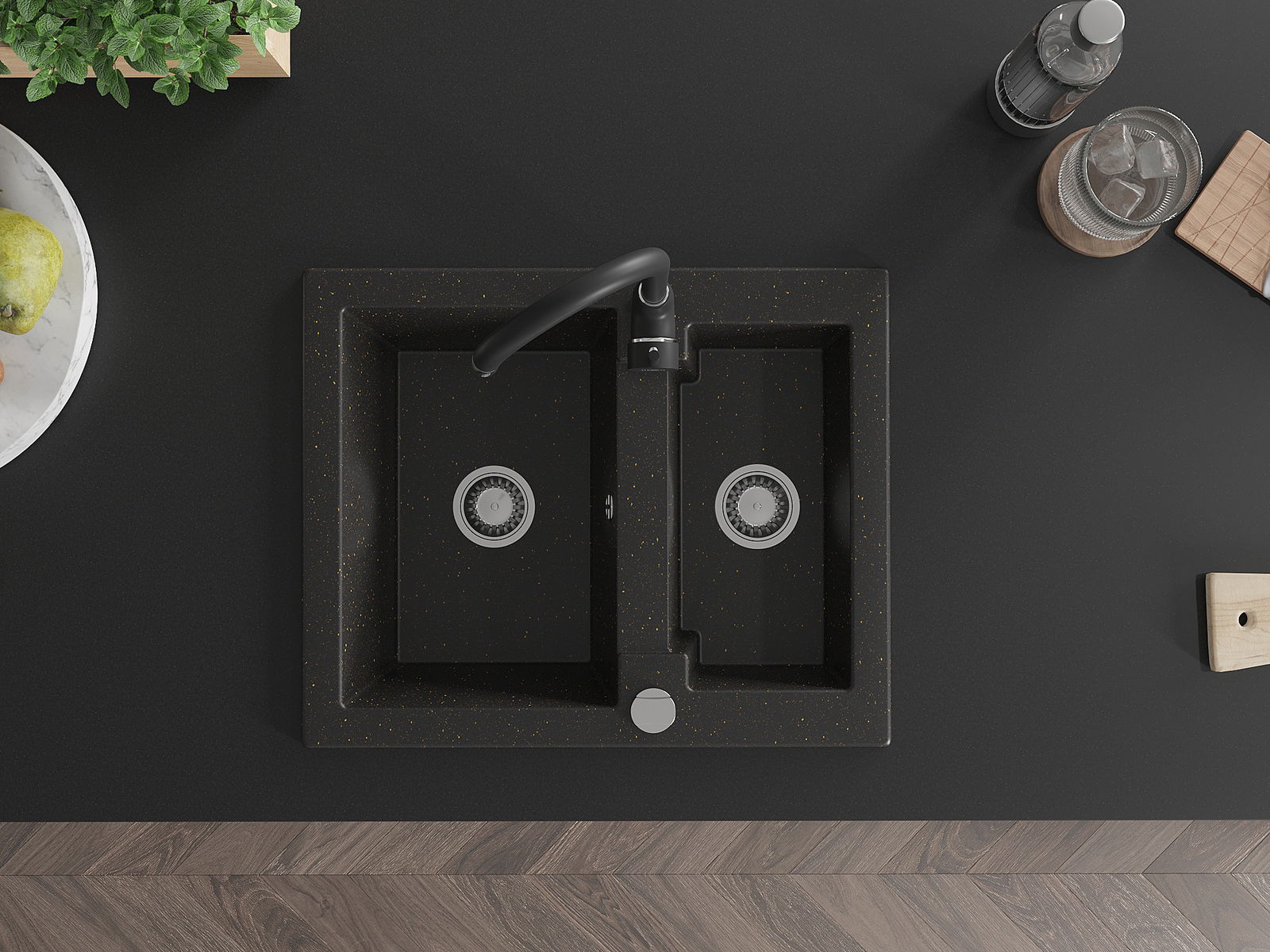 La surface de l'évier est très bien durcie, elle se distingue par une résistance exceptionnelle aux dommages mécaniques et aux rayures. Le matériau durable de fabrication permet de profiter de l'apparence de l'évier pendant de nombreuses années d'utilisation.