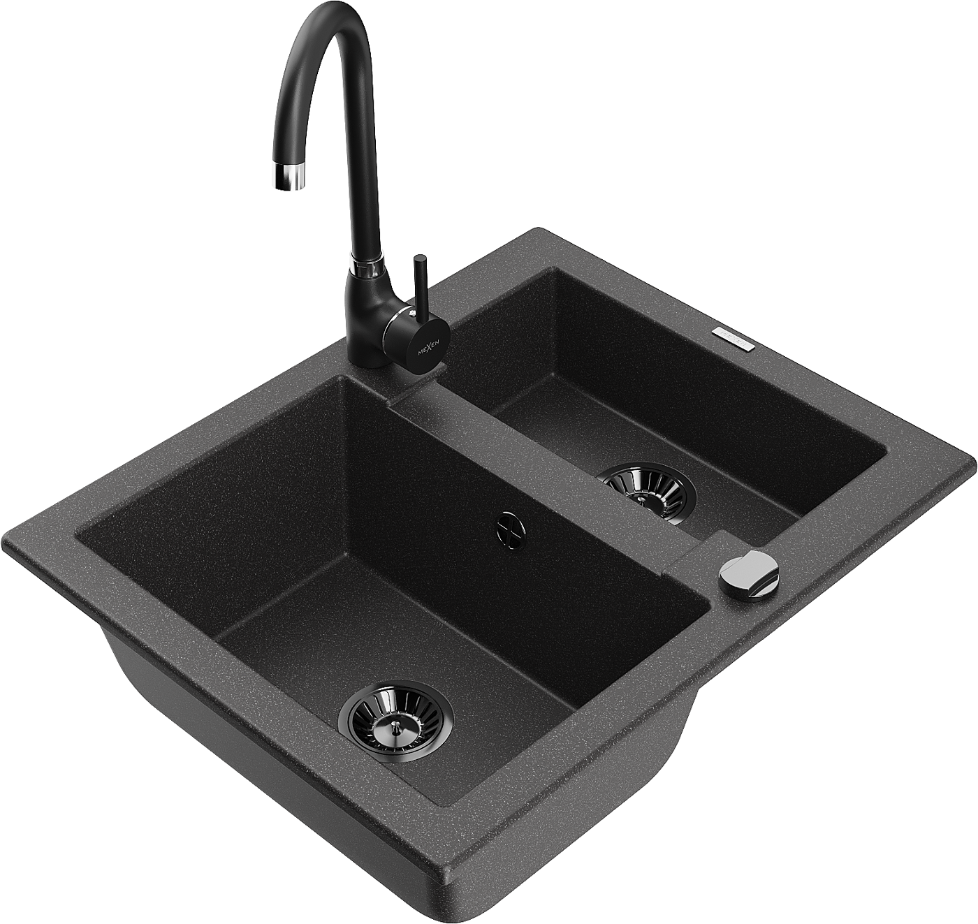 Mexen Carlos évier en granit 1,5 bac avec robinet de cuisine Telma, noir moucheté - 6518-76-670200-70-B