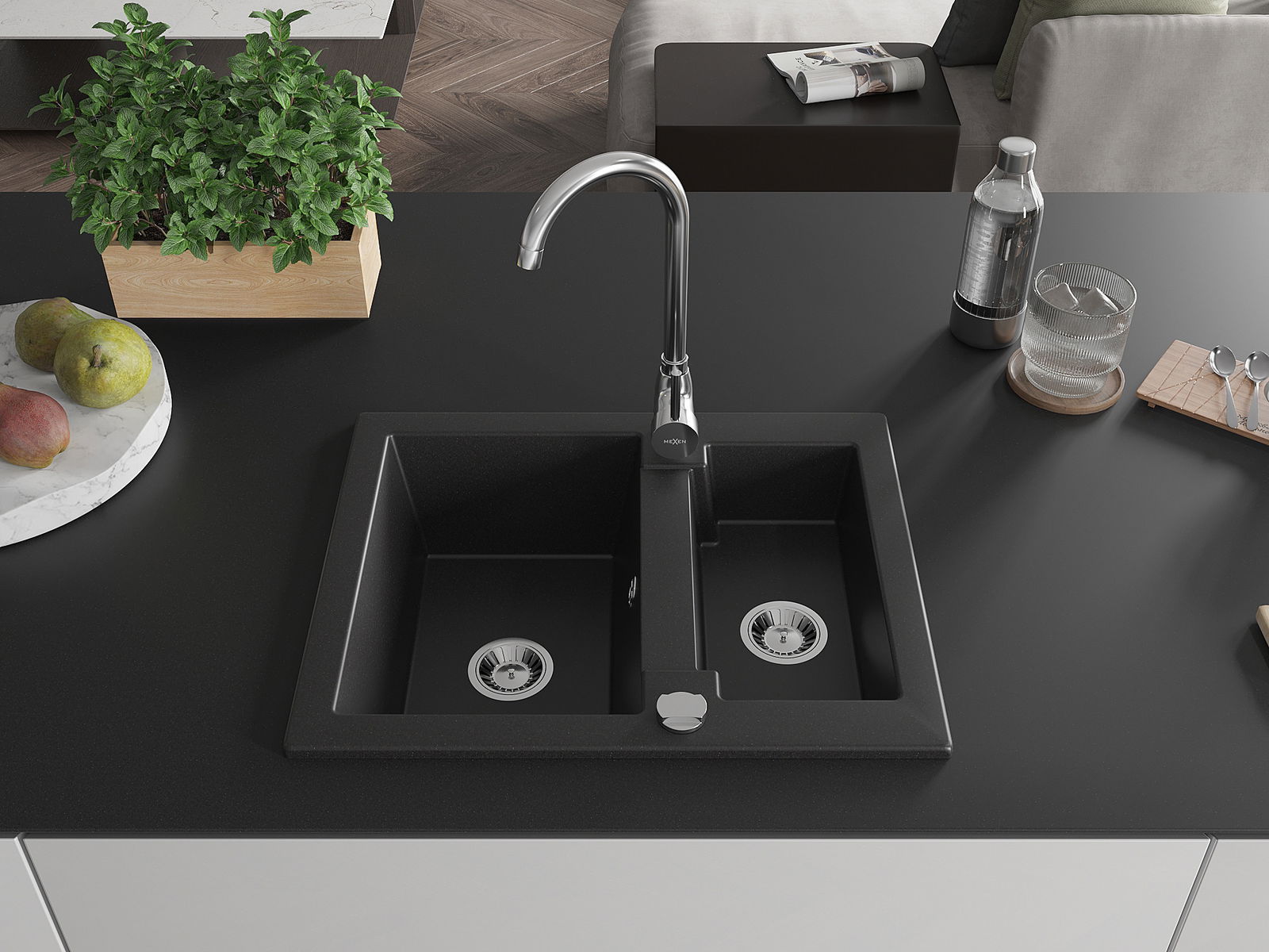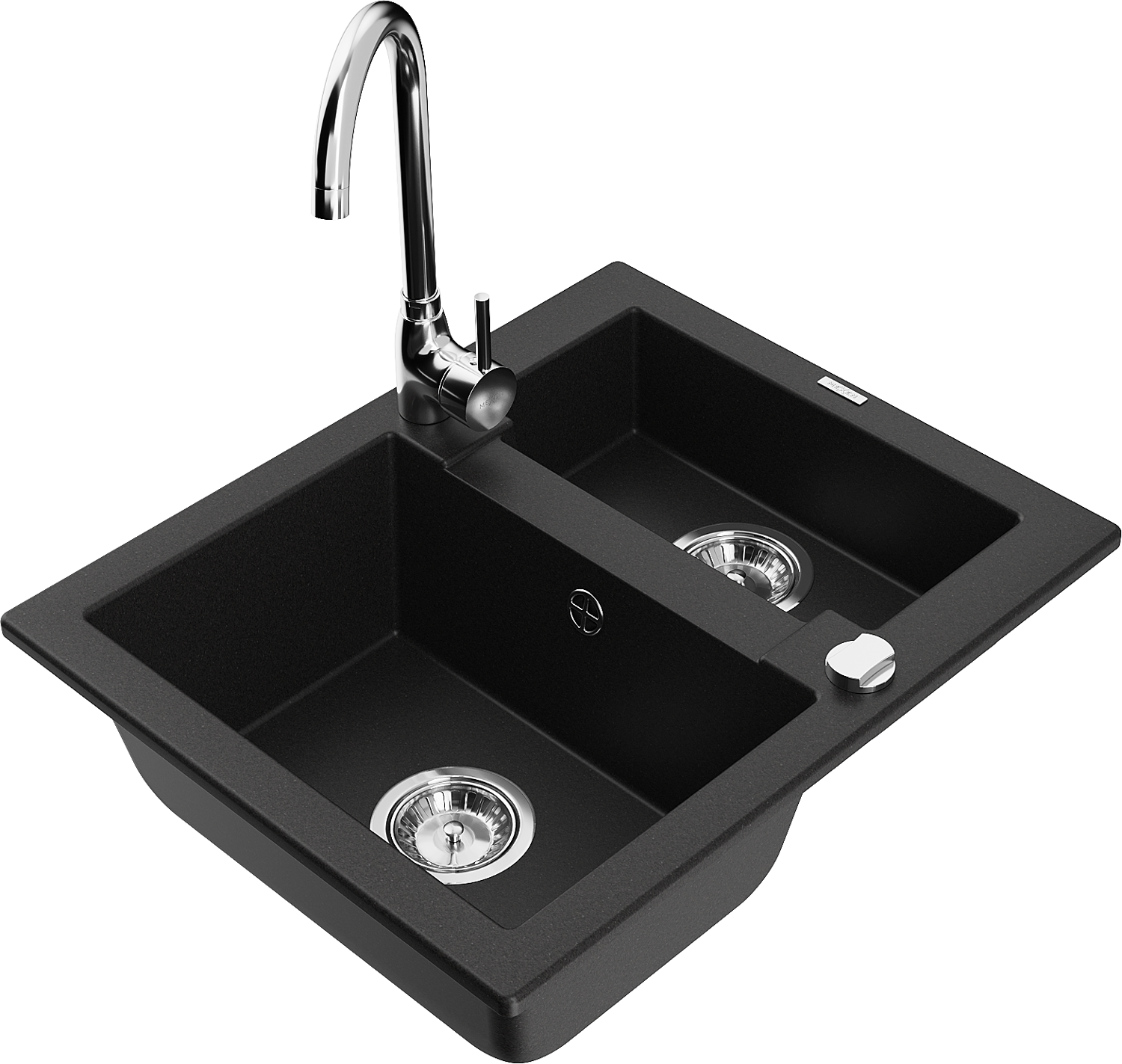 Mexen Carlos évier en granit 1,5 bac avec robinet de cuisine Telma, noir - 6518-77-670200-00