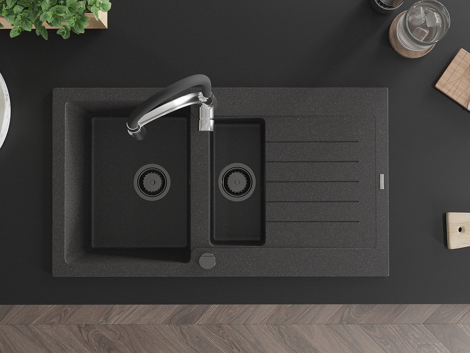 La surface de l'évier est très bien durcie, elle se distingue par une résistance exceptionnelle aux dommages mécaniques et aux rayures. Le matériau durable de fabrication permet de profiter de l'apparence de l'évier pendant de nombreuses années d'utilisation.