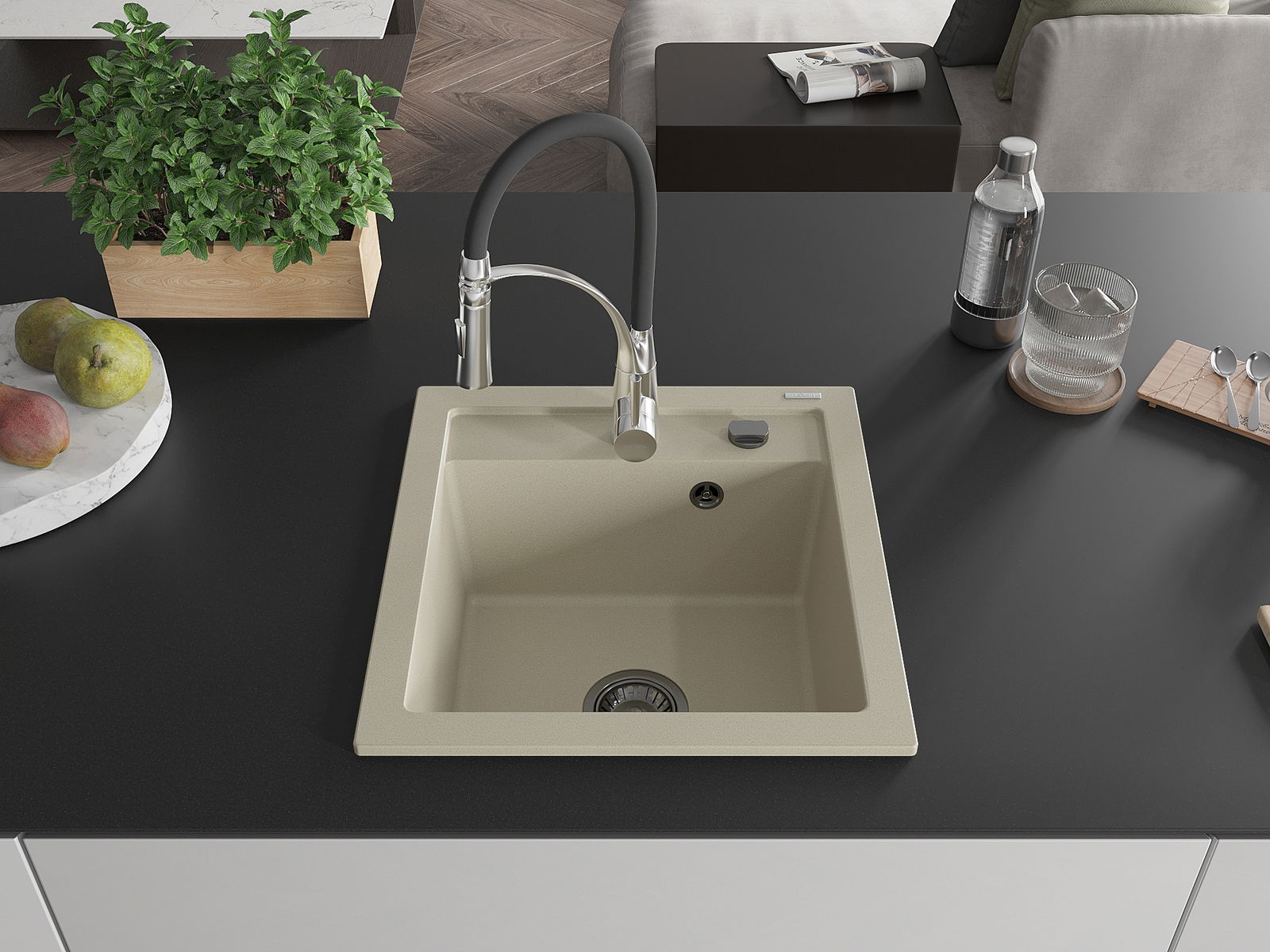 L'évier a été fabriqué en granit de haute qualité. Il constitue un complément élégant et surtout pratique à toute cuisine, quel que soit son style. La haute qualité et la durabilité du granit garantissent une utilisation pendant de nombreuses années.