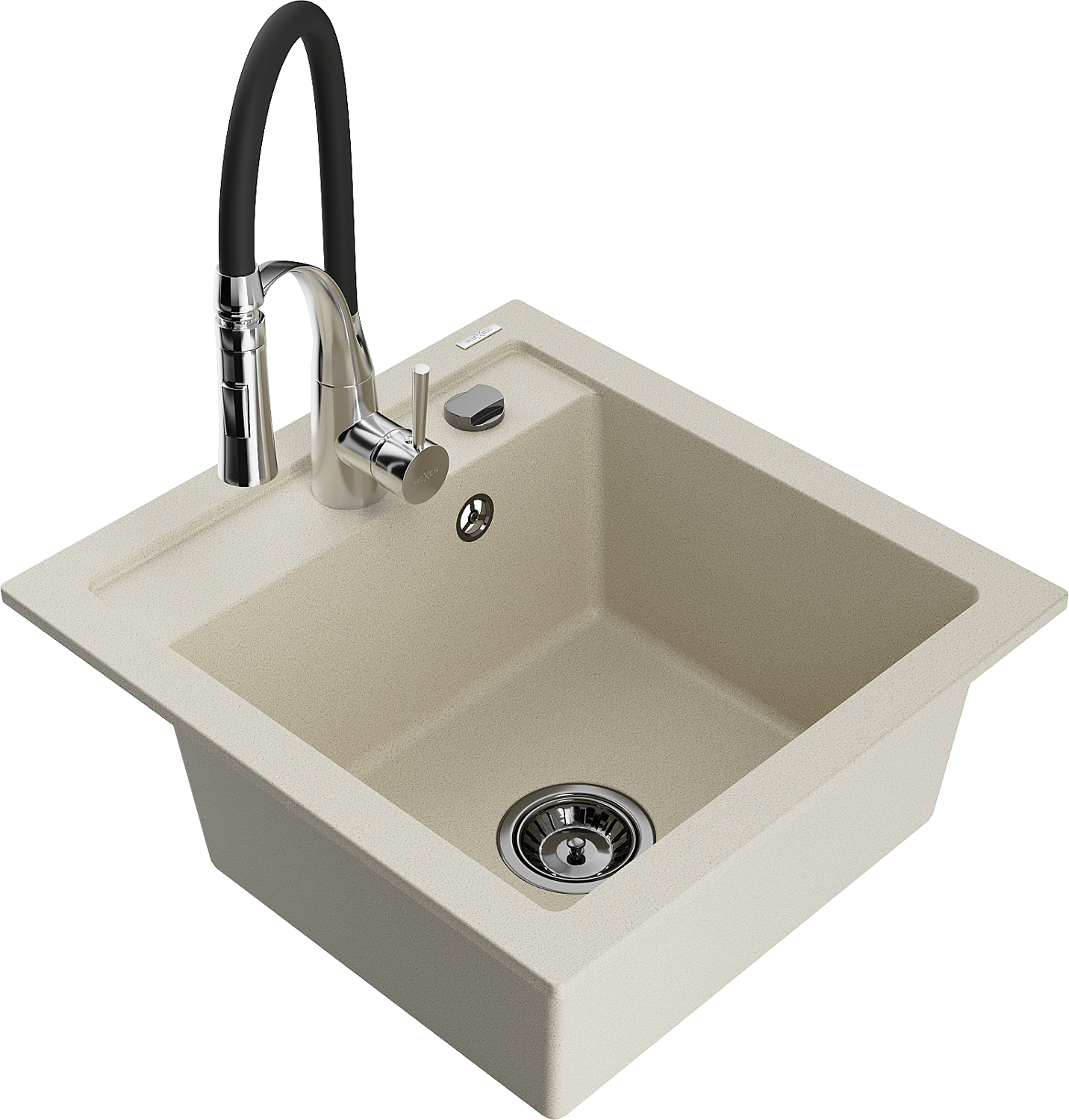 Mexen Vito évier en granit 1 bac avec mitigeur de cuisine Aster, beige - 6503-69-73450-07-B