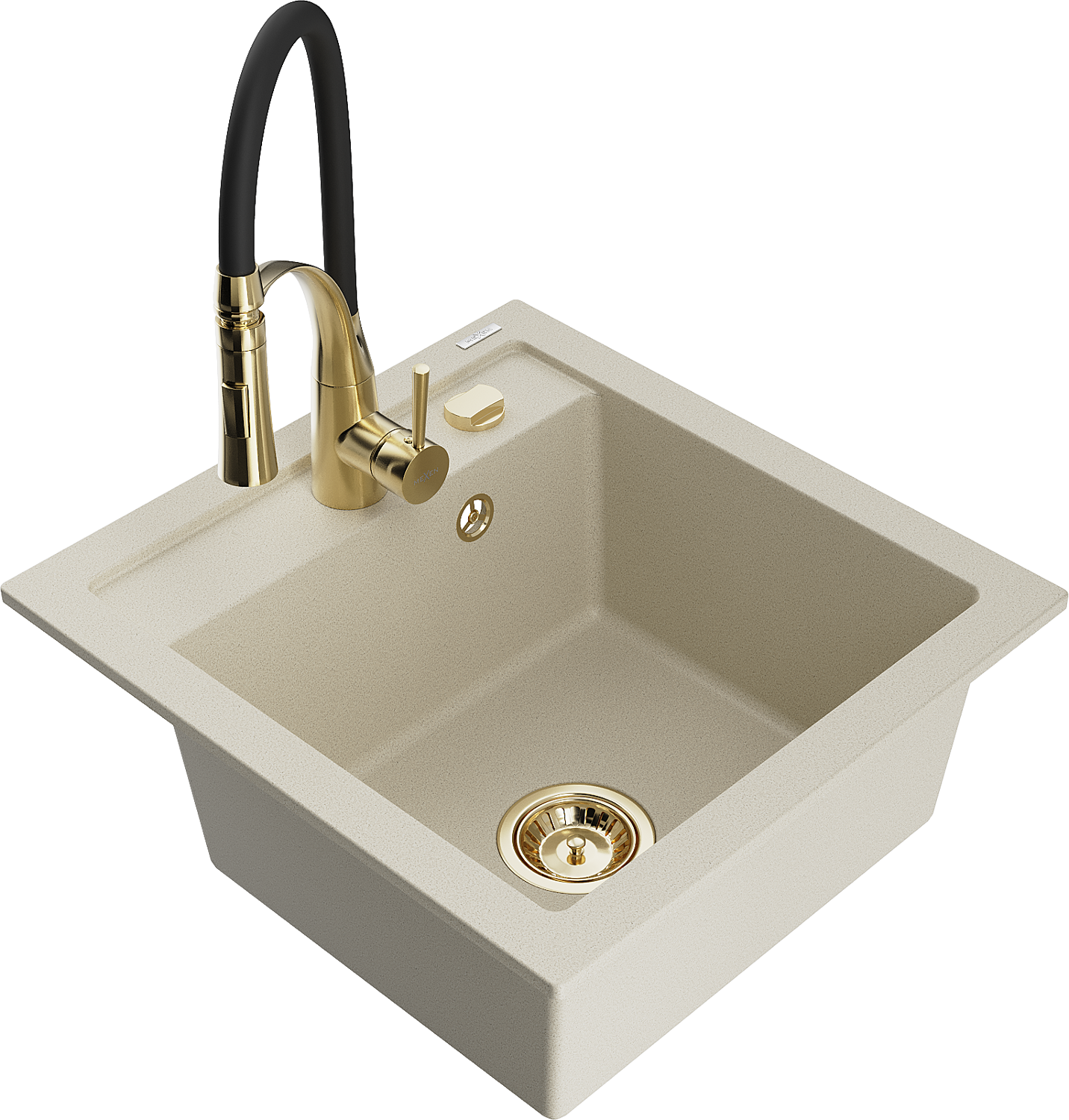 Mexen Vito évier en granit 1 bac avec robinet de cuisine Aster, beige - 6503-69-73450-57-G