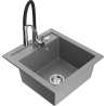 Mexen Vito évier en granit 1 bac avec robinet de cuisine Aster, noir/argent métallique- 6503-73-73450-07