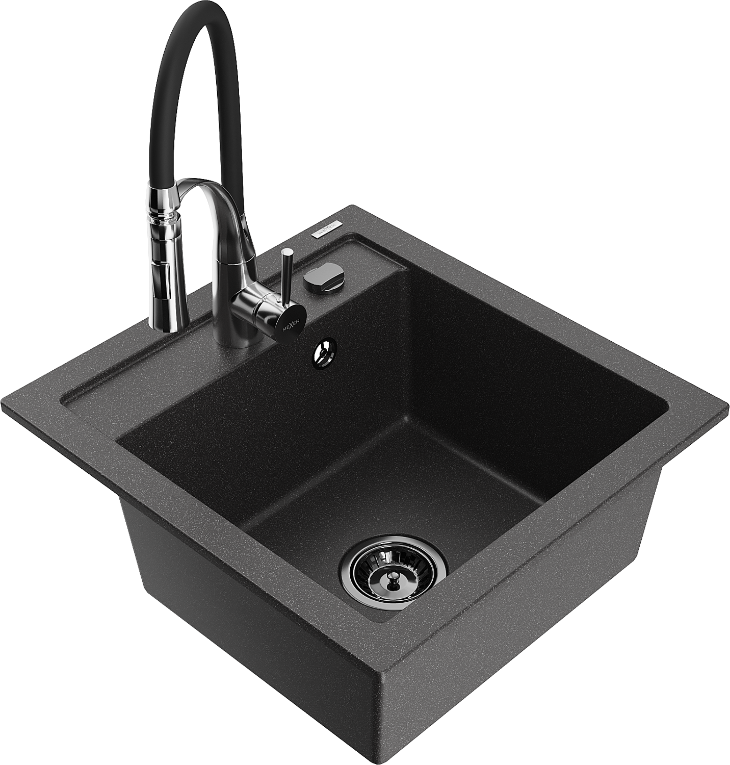 Mexen Vito évier en granit à 1 bac avec robinet de cuisine Aster, noir moucheté - 6503-76-73450-07-B
