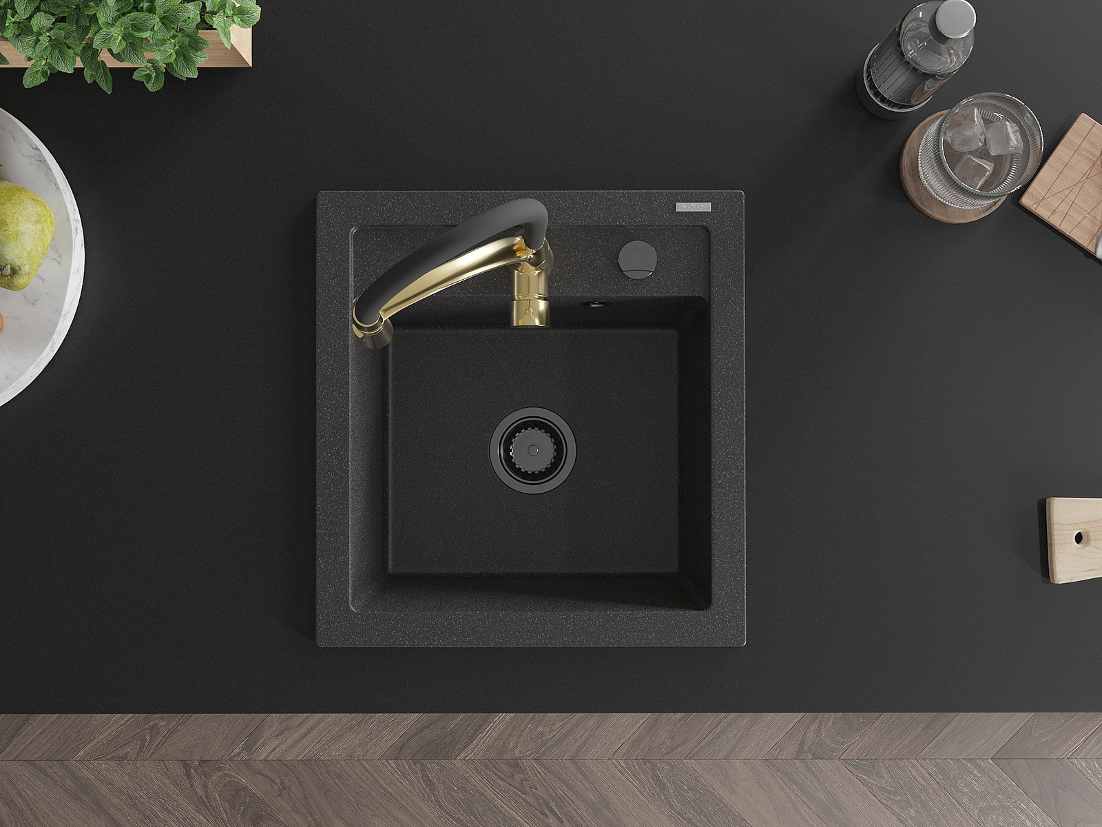 L'évier a un trou sous-meulé de 35 mm de diamètre à percer soi-même. Il peut être utilisé, entre autres, pour installer un distributeur de liquide, ce qui éliminera la présence de bouteilles en plastique dans la cuisine et lui donnera une finition élégante.
