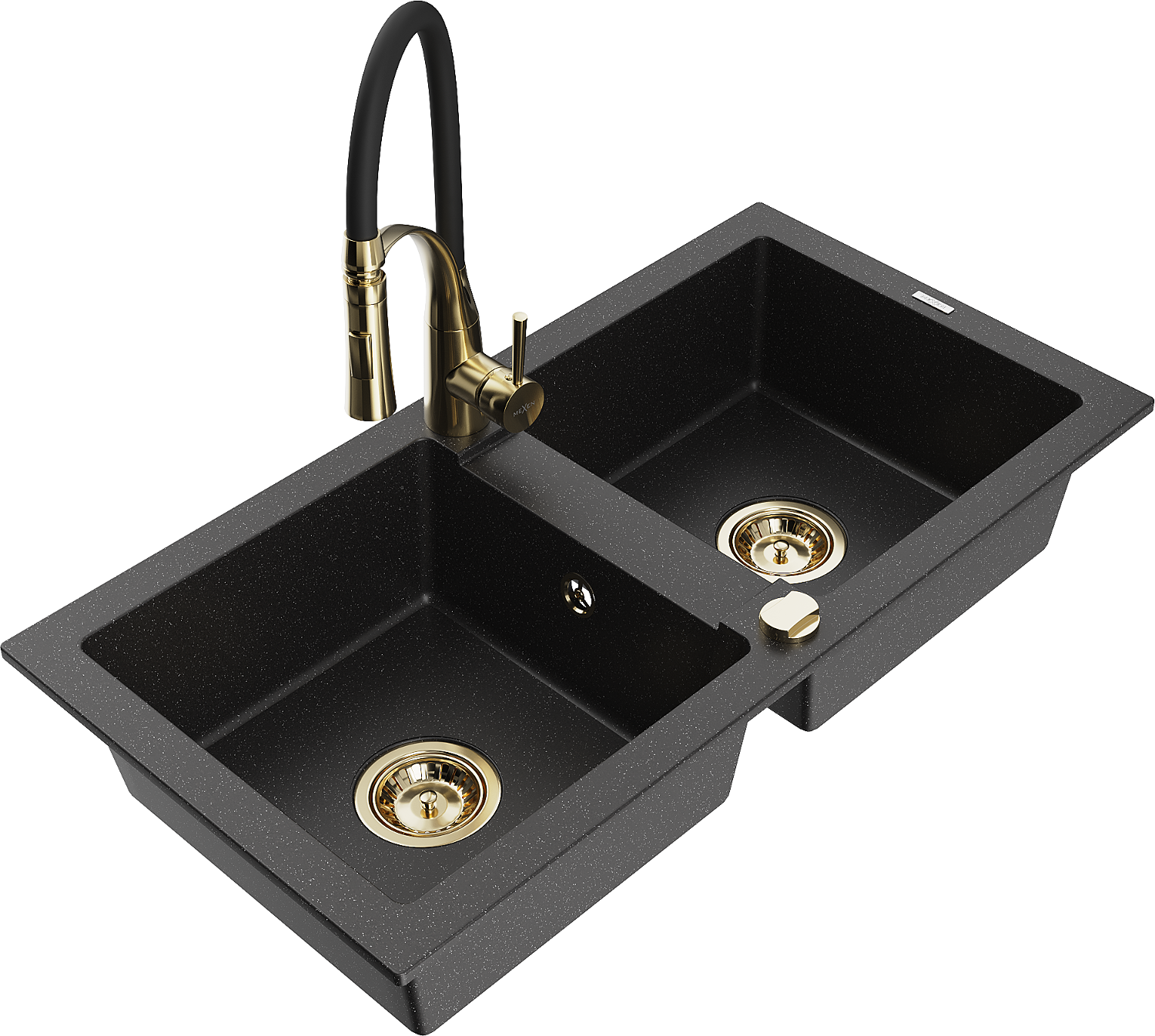 Mexen Mario évier en granit 2 bacs avec mitigeur de cuisine Aster, noir/métallique argent - 6504-73-73450-57-G