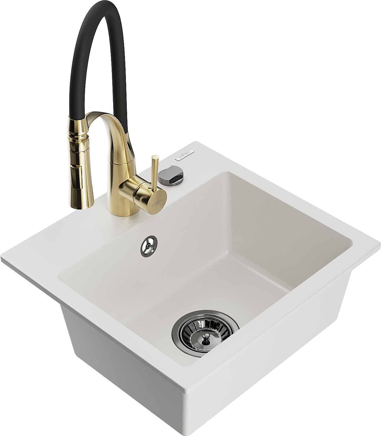 Mexen Milo évier en granit 1 bac avec mitigeur de cuisine Aster, blanc - 6505-20-73450-57-B