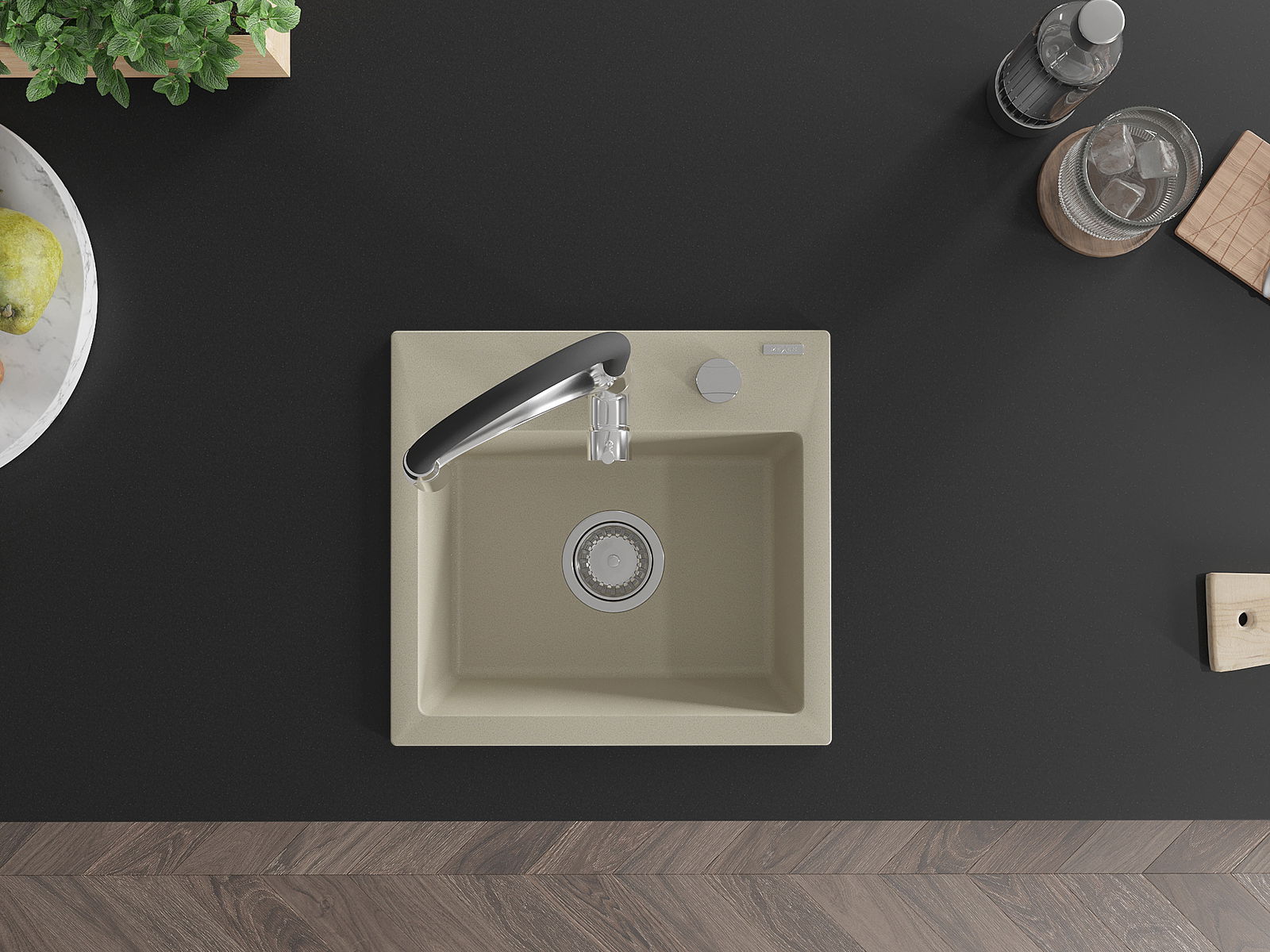 L'évier a un trou sous-meulé de 35 mm de diamètre à percer soi-même. Il peut être utilisé, entre autres, pour installer un distributeur de liquide, ce qui éliminera la présence de bouteilles en plastique dans la cuisine et lui donnera une finition élégante.