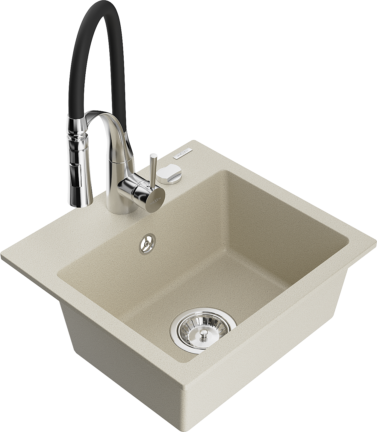Mexen Milo évier en granit à 1 bac avec robinet de cuisine Aster, beige - 6505-69-73450-07