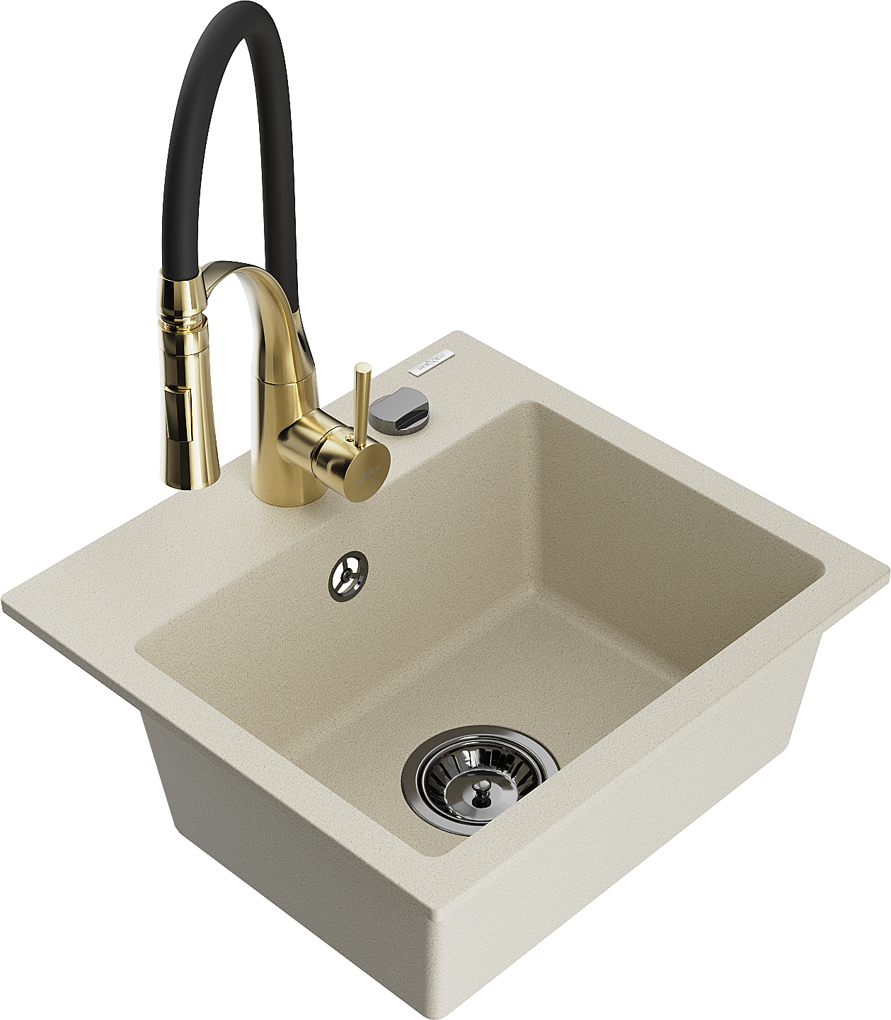 Mexen Milo évier en granit à 1 bac avec mitigeur de cuisine Aster, beige - 6505-69-73450-57-B