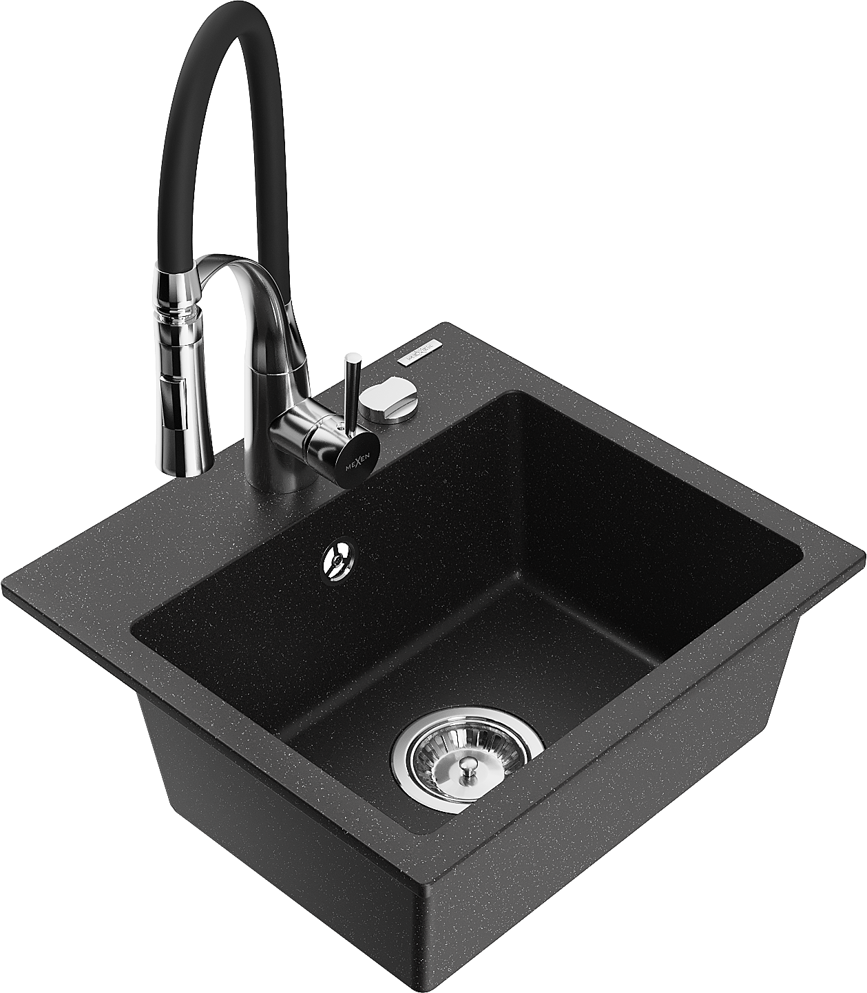 Mexen Milo évier de cuisine en granit 1 bac avec robinet de cuisine Aster, noir/argent métallique - 6505-73-73450-07