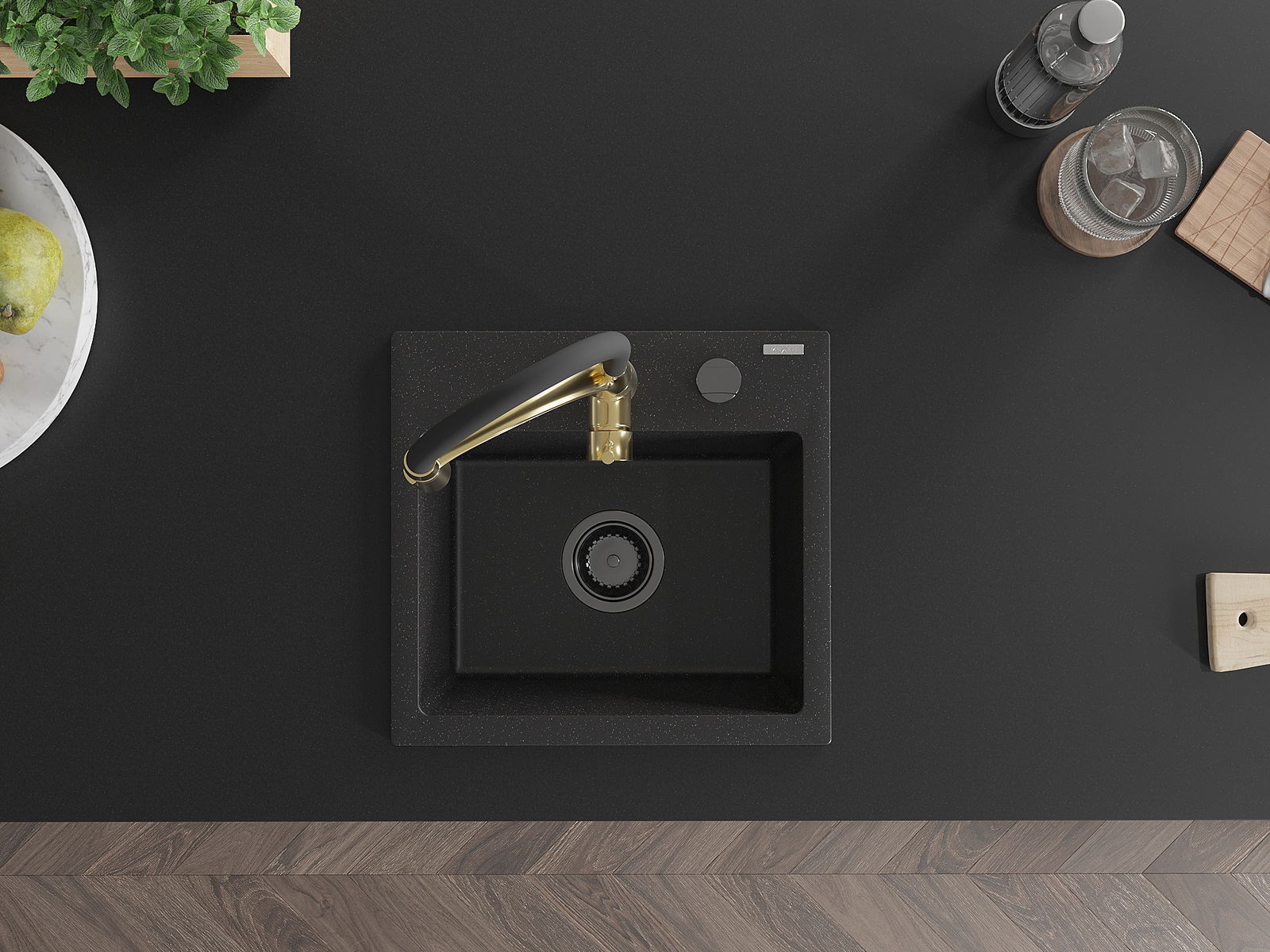 L'évier a un trou sous-meulé de 35 mm de diamètre à percer soi-même. Il peut être utilisé, entre autres, pour installer un distributeur de liquide, ce qui éliminera la présence de bouteilles en plastique dans la cuisine et lui donnera une finition élégante.