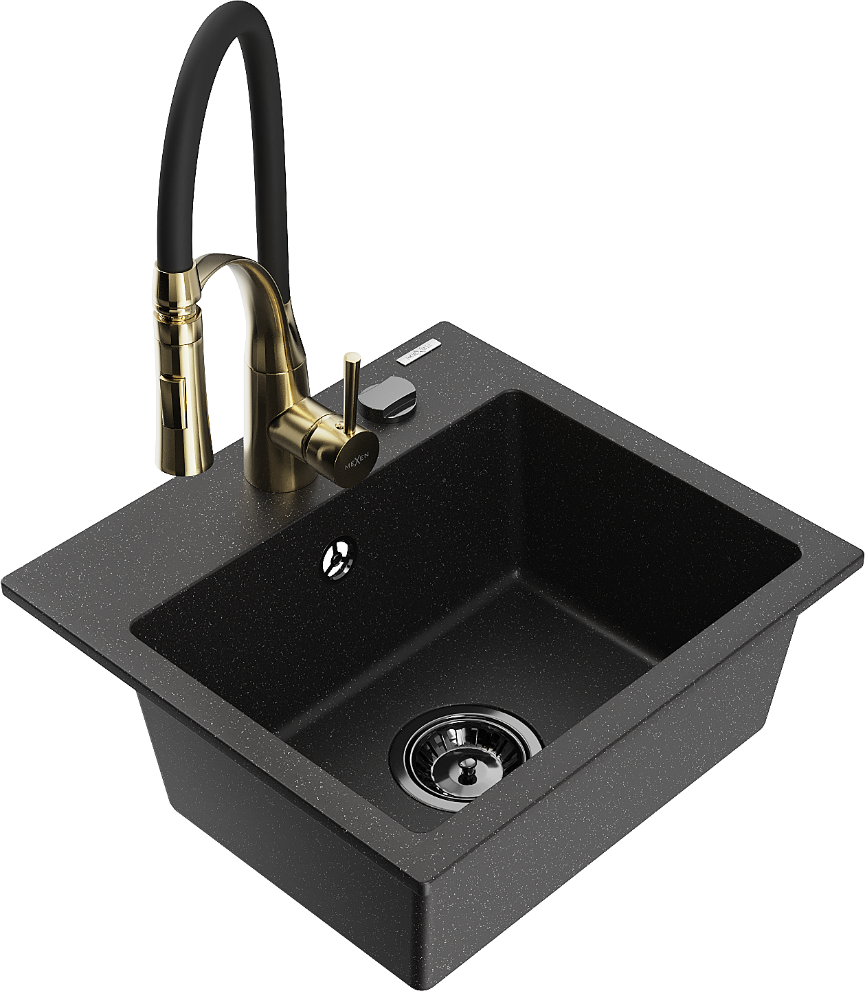 Mexen Milo évier de cuisine en granit 1 bac avec robinet de cuisine Aster, noir/métallisé argenté - 6505-73-73450-57-B