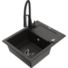 Mexen Enzo évier en granit 1 bac avec égouttoir et robinet de cuisine Aster, gris - 6506-71-73450-70-B