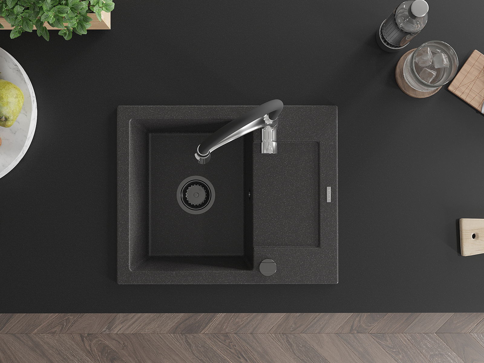 L'évier a été fabriqué en granit de haute qualité. Il constitue un complément élégant et surtout pratique à toute cuisine, quel que soit son style. La haute qualité et la durabilité du granit garantissent une utilisation pendant de nombreuses années.