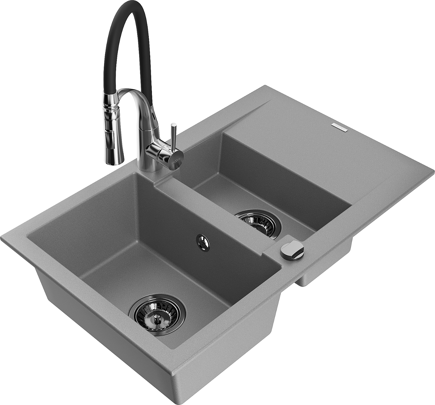 Mexen Gaspar évier en granit 1,5 bac avec égouttoir et robinet de cuisine Aster, gris - 6507-71-73450-07-B
