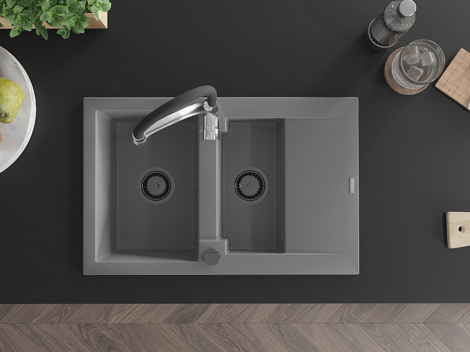 La surface de l'évier est très bien durcie, elle se distingue par une résistance exceptionnelle aux dommages mécaniques et aux rayures. Le matériau durable de fabrication permet de profiter de l'apparence de l'évier pendant de nombreuses années d'utilisation.