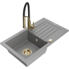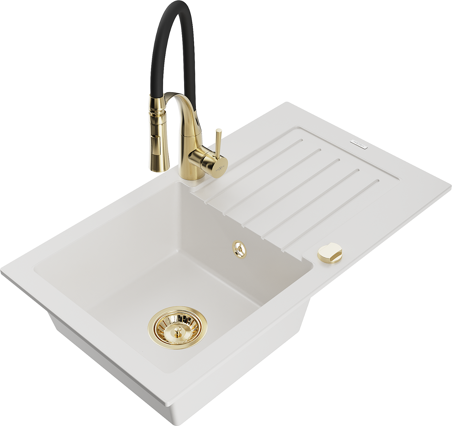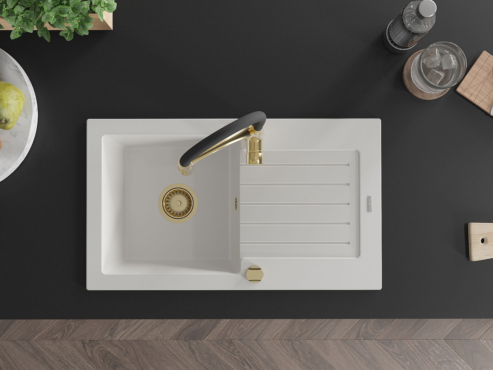 Mexen Pablo évier en granit 1 bac avec égouttoir et robinet de cuisine Aster, blanc - 6510-20-73450-57-G