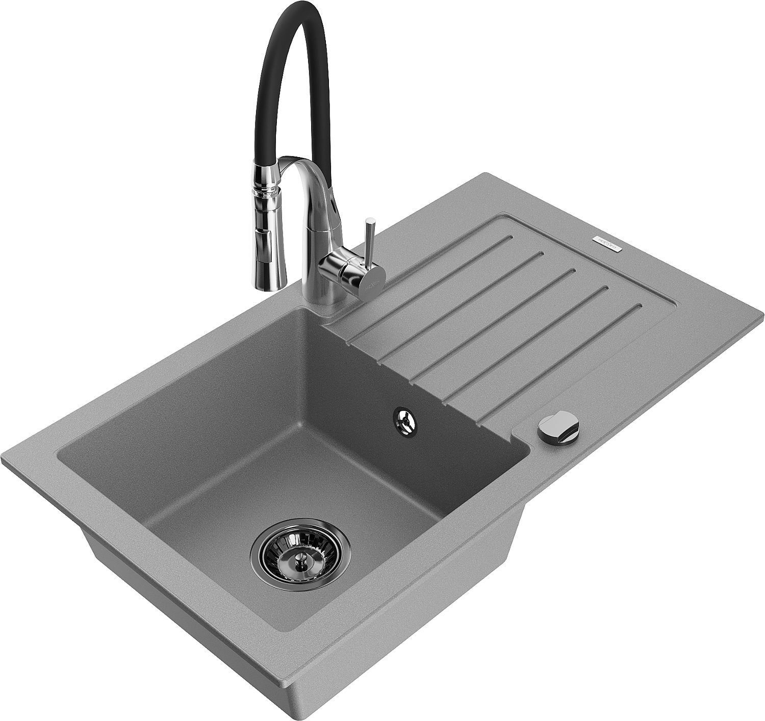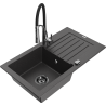 Mexen Pablo évier en granit 1 bac avec égouttoir et robinet de cuisine Aster, gris - 6510-71-73450-07-B