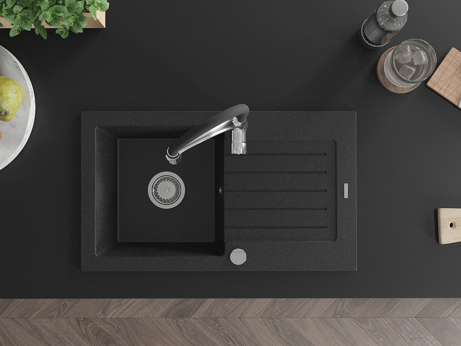 La surface de l'évier est très bien durcie, elle se distingue par une résistance exceptionnelle aux dommages mécaniques et aux rayures. Le matériau durable de fabrication permet de profiter de l'apparence de l'évier pendant de nombreuses années d'utilisation.