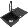 Mexen Pablo évier de cuisine en granit 1 bac avec égouttoir et robinet de cuisine Aster, noir/argent métal - 6510-73-73450-07