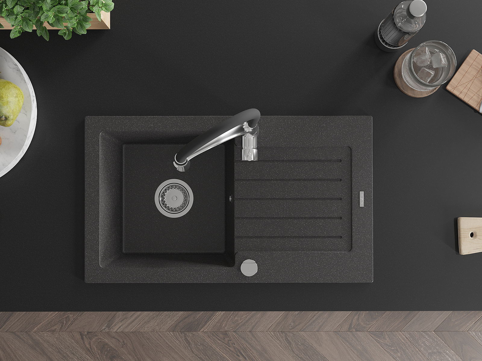 La surface de l'évier est très bien durcie, elle se distingue par une résistance exceptionnelle aux dommages mécaniques et aux rayures. Le matériau durable de fabrication permet de profiter de l'apparence de l'évier pendant de nombreuses années d'utilisation.