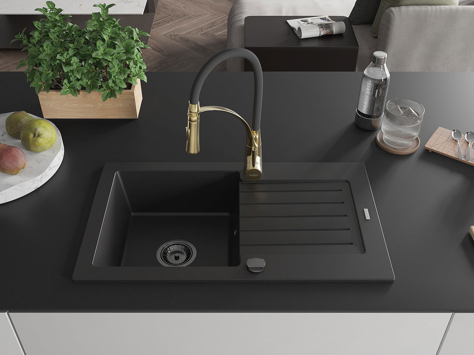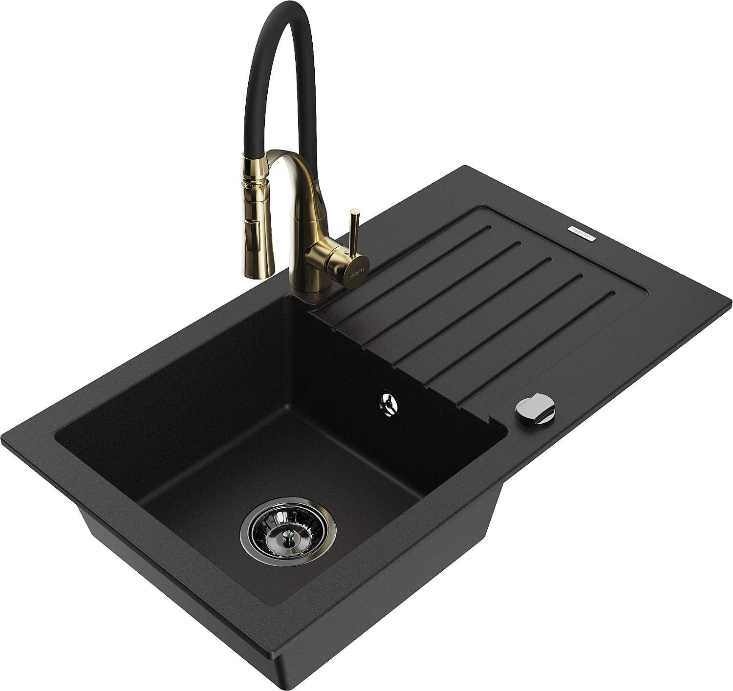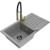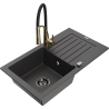 Mexen Pablo évier en granit 1 bac avec égouttoir et robinet de cuisine Aster, noir - 6510-77-73450-57-B