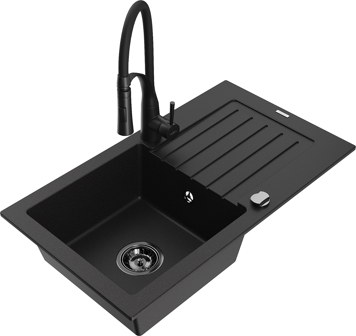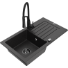 Mexen Pablo évier en granit 1 bac avec égouttoir et robinet de cuisine Aster, noir - 6510-77-73450-70-B