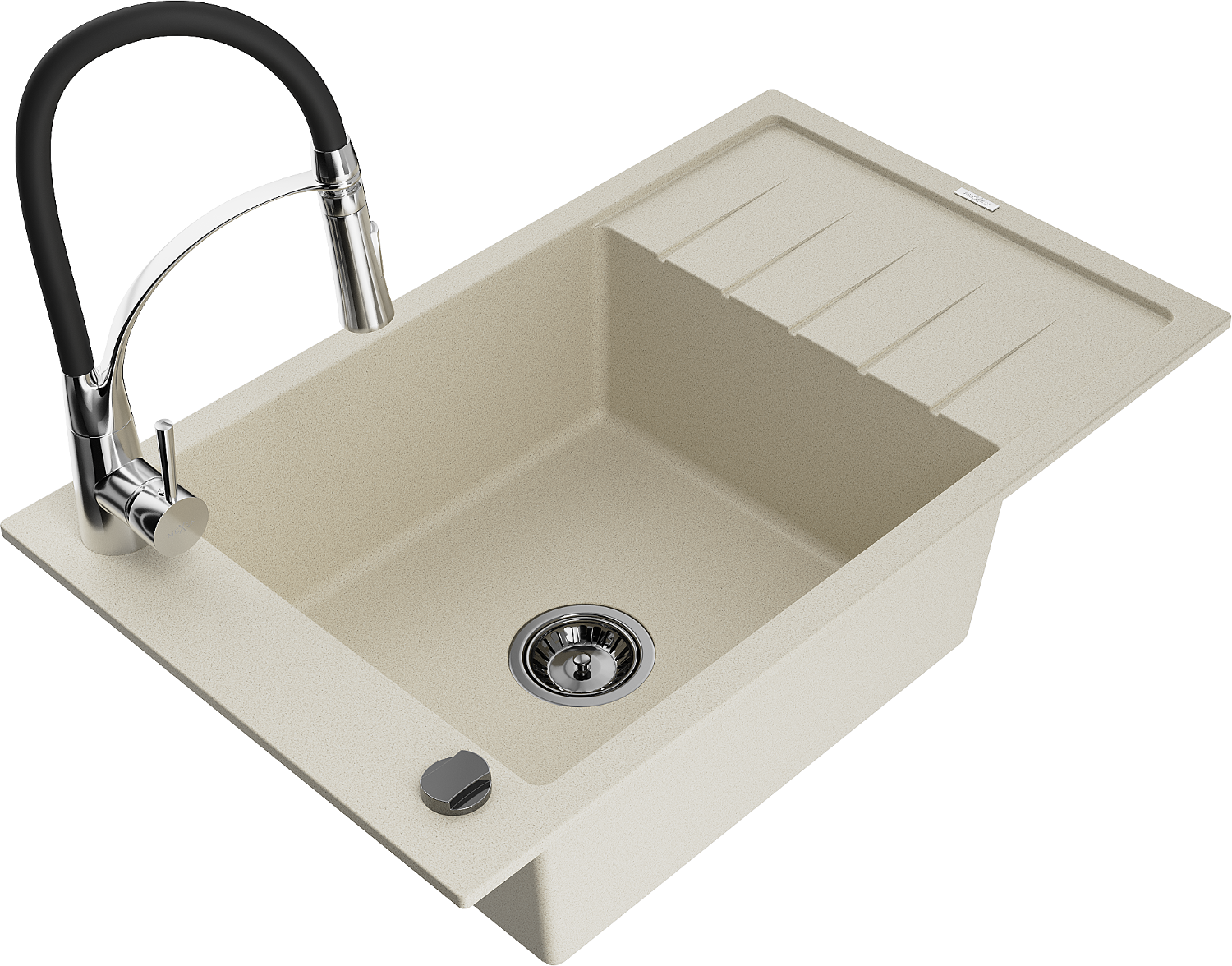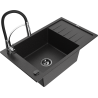 Mexen Elias évier en granit 1 bac avec égouttoir et robinet de cuisine Aster, beige - 6511-69-73450-07-B