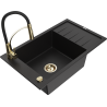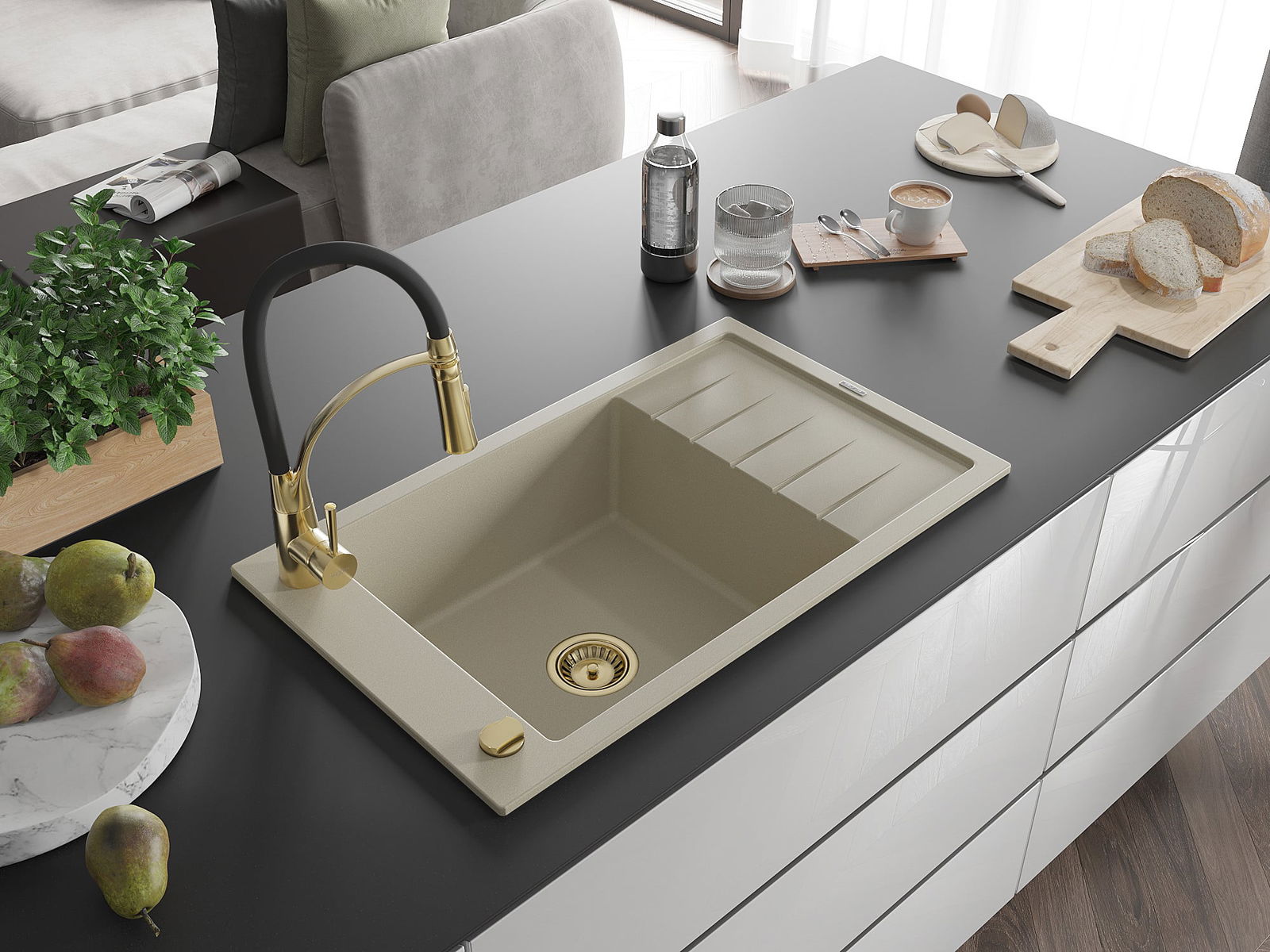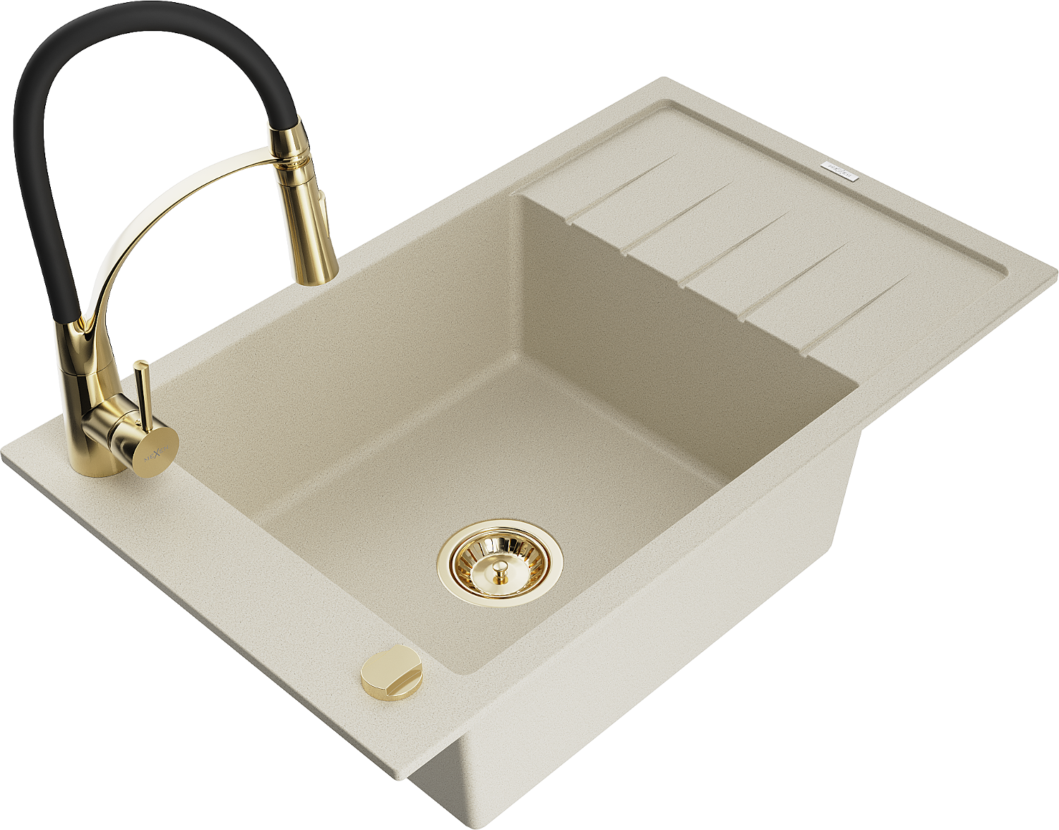 Mexen Elias évier en granit 1 bac avec égouttoir et robinet de cuisine Aster, beige - 6511-69-73450-57-G