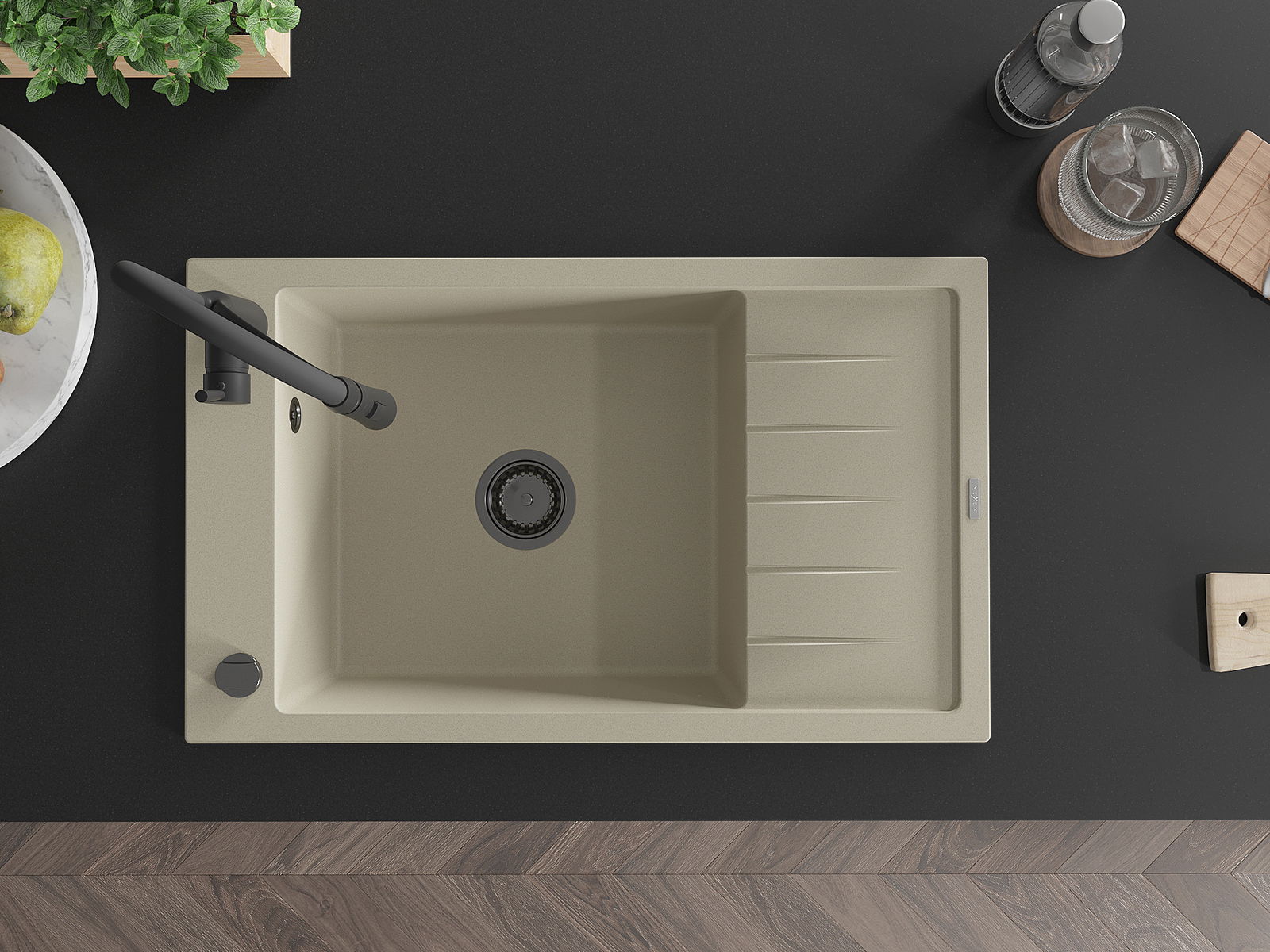 L'évier a été fabriqué en granit de haute qualité. Il constitue un complément élégant et surtout pratique à toute cuisine, quel que soit son style. La haute qualité et la durabilité du granit garantissent une utilisation pendant de nombreuses années.