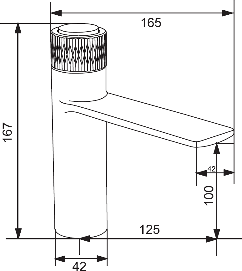 Portée du bec: 125 mm