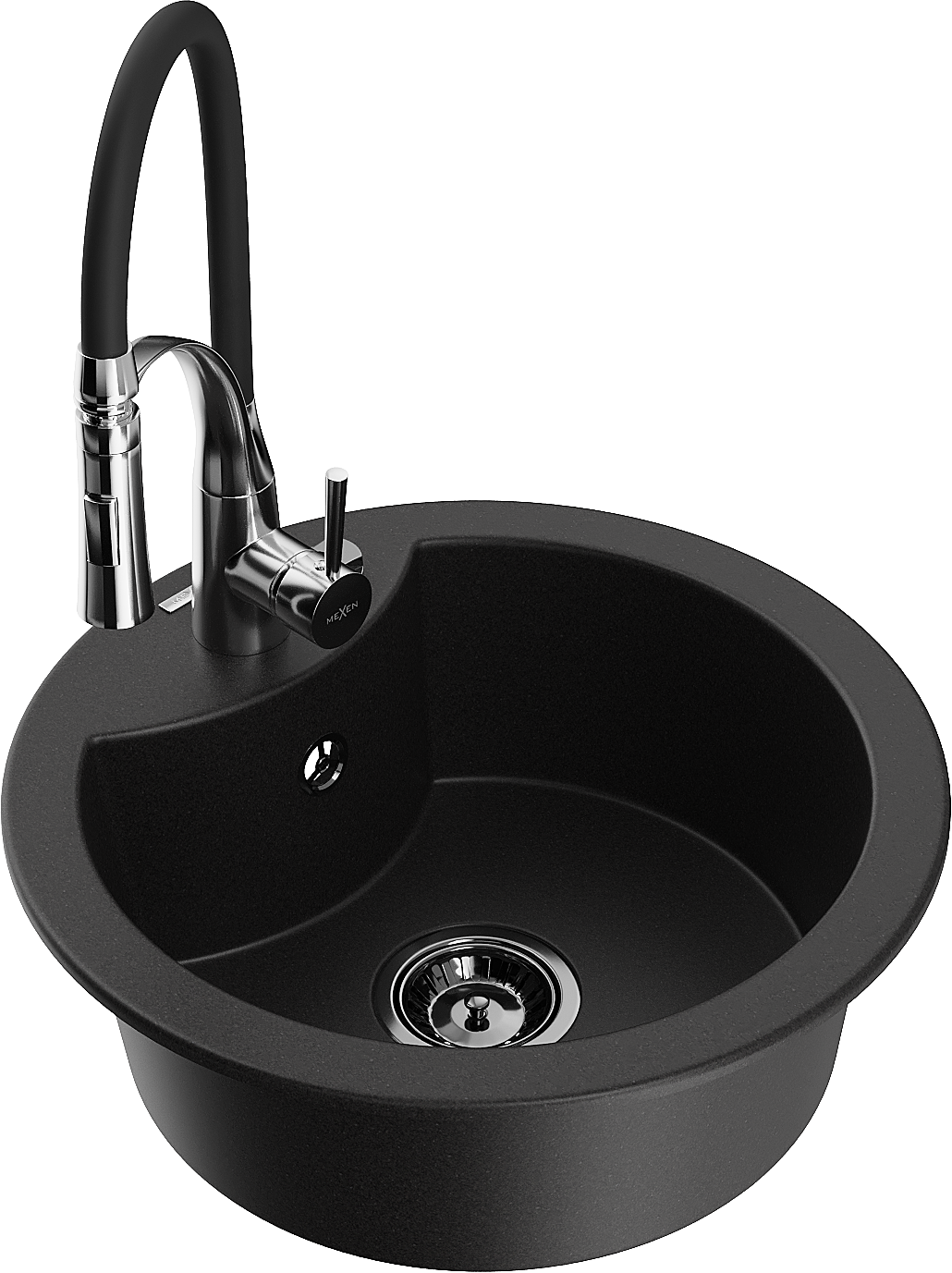 Mexen Diego évier en granit 1 bac avec robinet de cuisine Aster, noir - 6512-77-73450-07-B