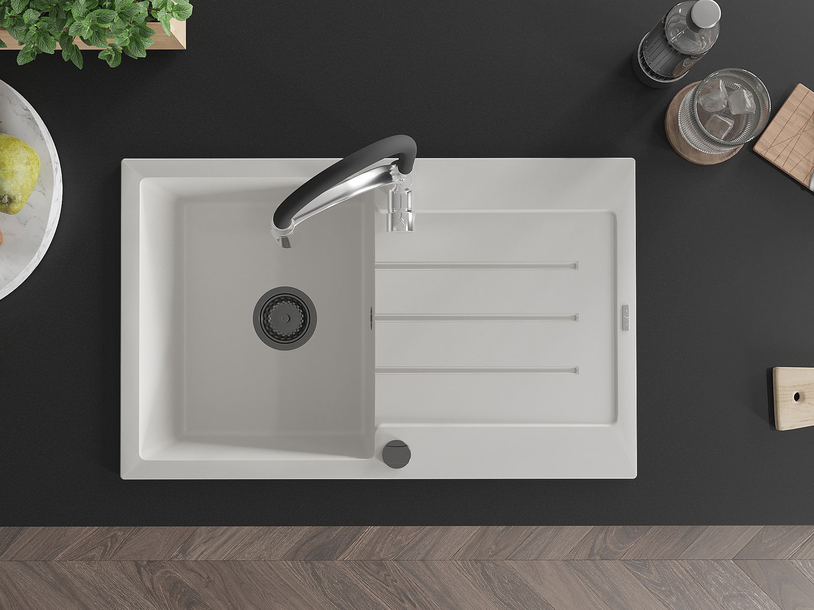 La surface de l'évier est très bien durcie, elle se distingue par une résistance exceptionnelle aux dommages mécaniques et aux rayures. Le matériau durable de fabrication permet de profiter de l'apparence de l'évier pendant de nombreuses années d'utilisation.