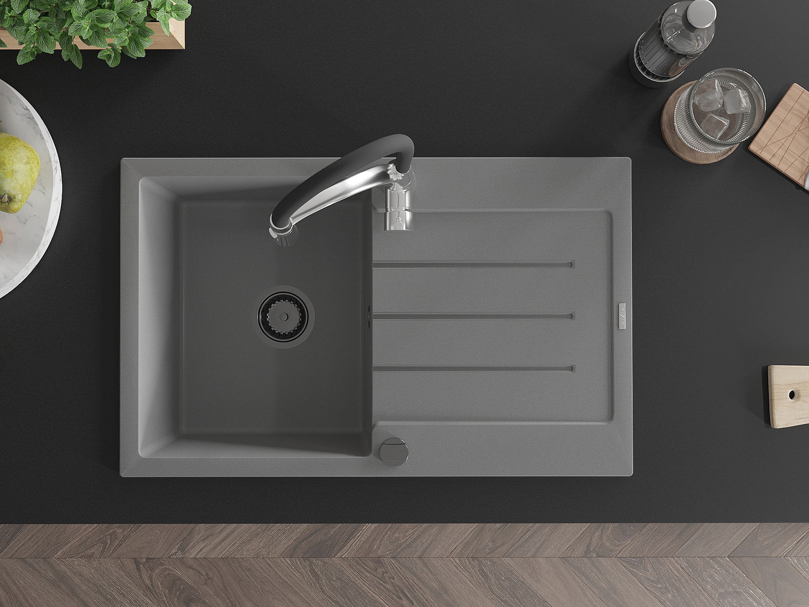 La surface de l'évier est très bien durcie, elle se distingue par une résistance exceptionnelle aux dommages mécaniques et aux rayures. Le matériau durable de fabrication permet de profiter de l'apparence de l'évier pendant de nombreuses années d'utilisation.