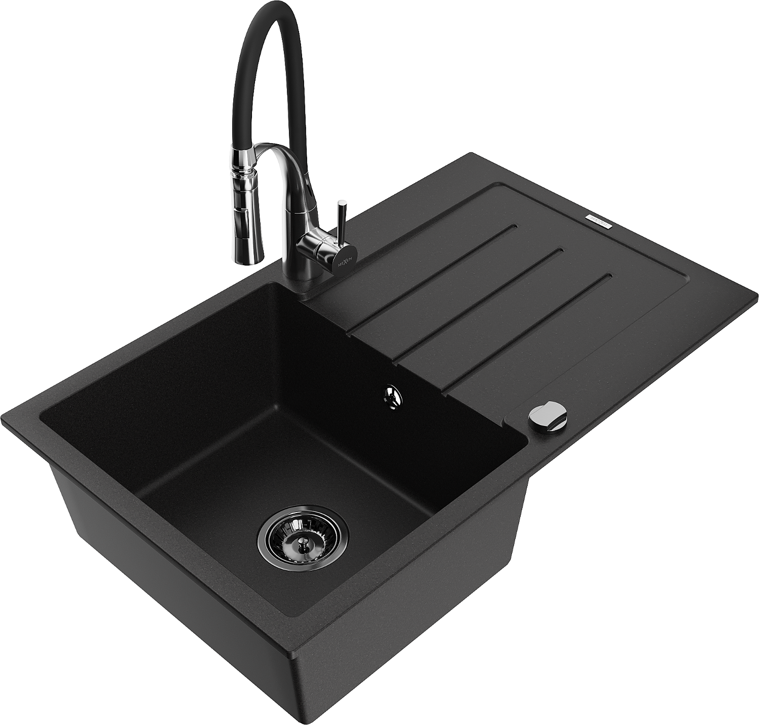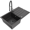 Mexen Bruno évier en granit à 1 bac avec égouttoir et robinet de cuisine Aster, noir - 6513-77-73450-07-B