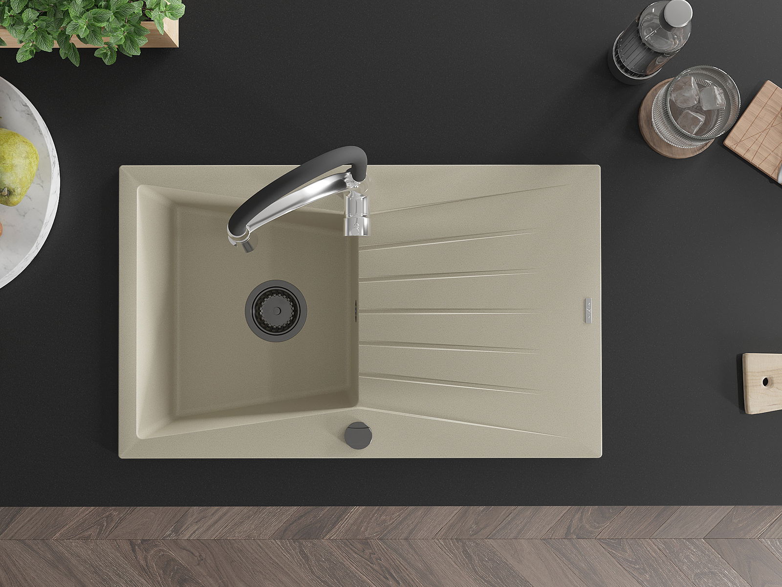 L'évier a été fabriqué en granit de haute qualité. Il constitue un complément élégant et surtout pratique à toute cuisine, quel que soit son style. La haute qualité et la durabilité du granit garantissent une utilisation pendant de nombreuses années.