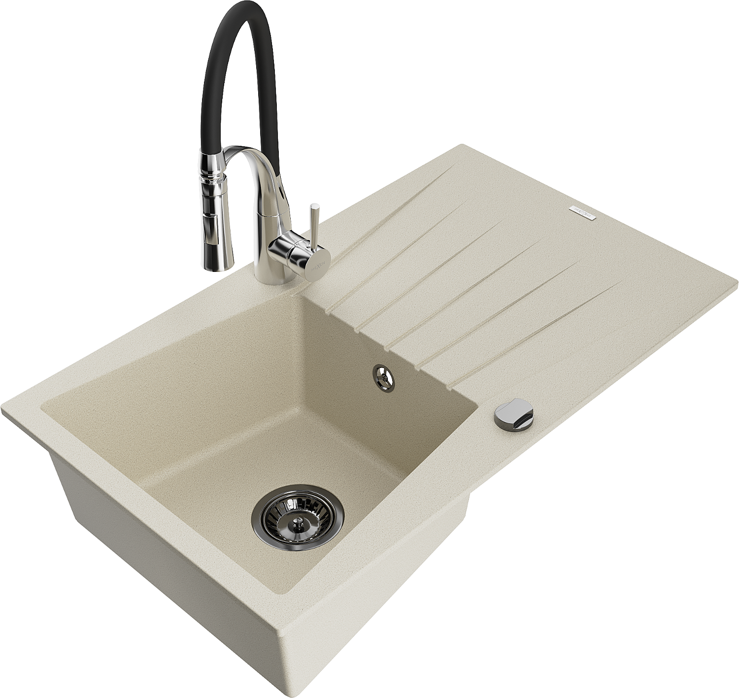 Mexen Cesar évier de cuisine granit 1 bac avec égouttoir et robinet de cuisine Aster, beige - 6514-69-73450-07-B